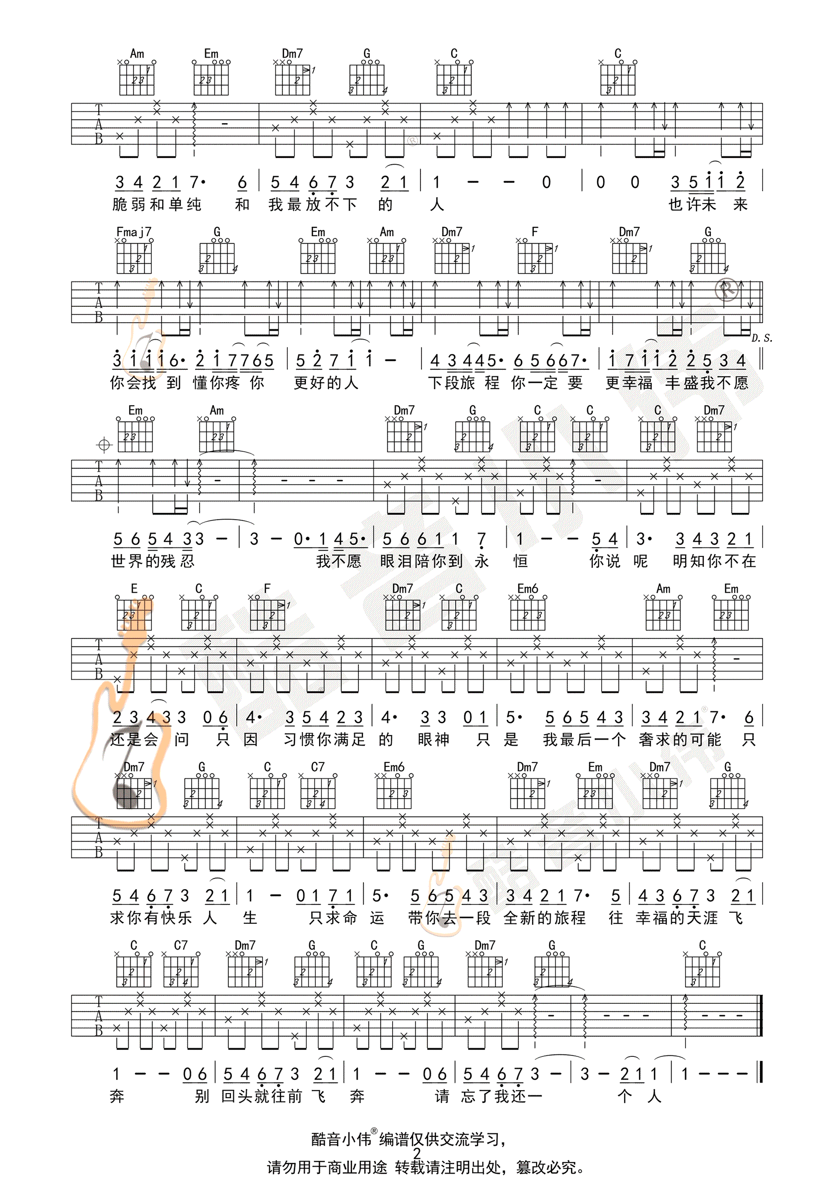 《五月天《我不愿让你一个人吉他谱》(C调)》内容来自于互联网,不能保证内容的准确性与完整性,仅供学习交流欣赏,请勿用于其它用途,内容版权归原作者及来源网站所有,如有侵犯到您的权益请来信告知,我们将及时删除。