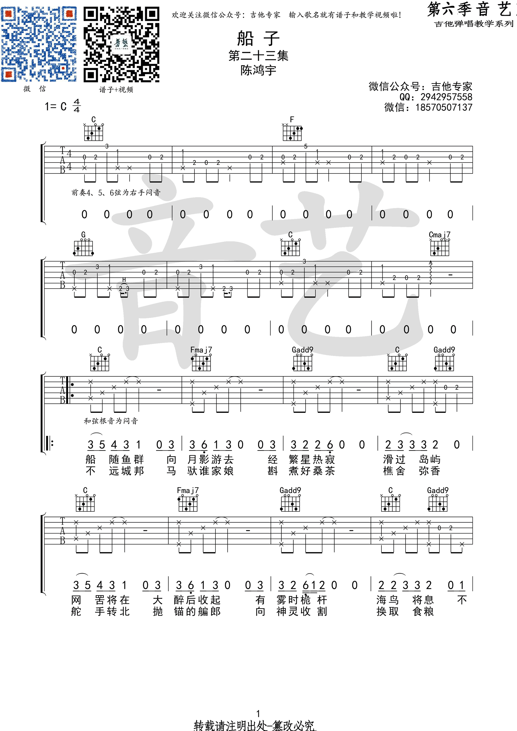《陈鸿宇《船子吉他谱》(C调)》内容来自于互联网,不能保证内容的准确性与完整性,仅供学习交流欣赏,请勿用于其它用途,内容版权归原作者及来源网站所有,如有侵犯到您的权益请来信告知,我们将及时删除。