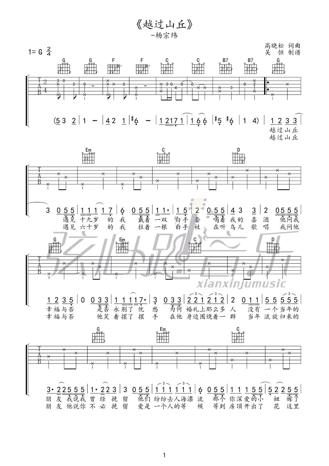 《李宗盛《越过山丘吉他谱》(G调)》内容来自于互联网,不能保证内容的准确性与完整性,仅供学习交流欣赏,请勿用于其它用途,内容版权归原作者及来源网站所有,如有侵犯到您的权益请来信告知,我们将及时删除。