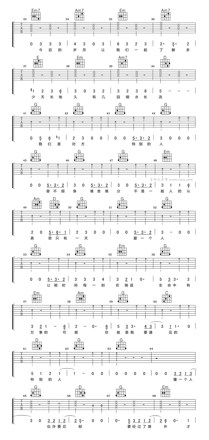 《方大同《特别的人吉他谱》(G调)》内容来自于互联网,不能保证内容的准确性与完整性,仅供学习交流欣赏,请勿用于其它用途,内容版权归原作者及来源网站所有,如有侵犯到您的权益请来信告知,我们将及时删除。