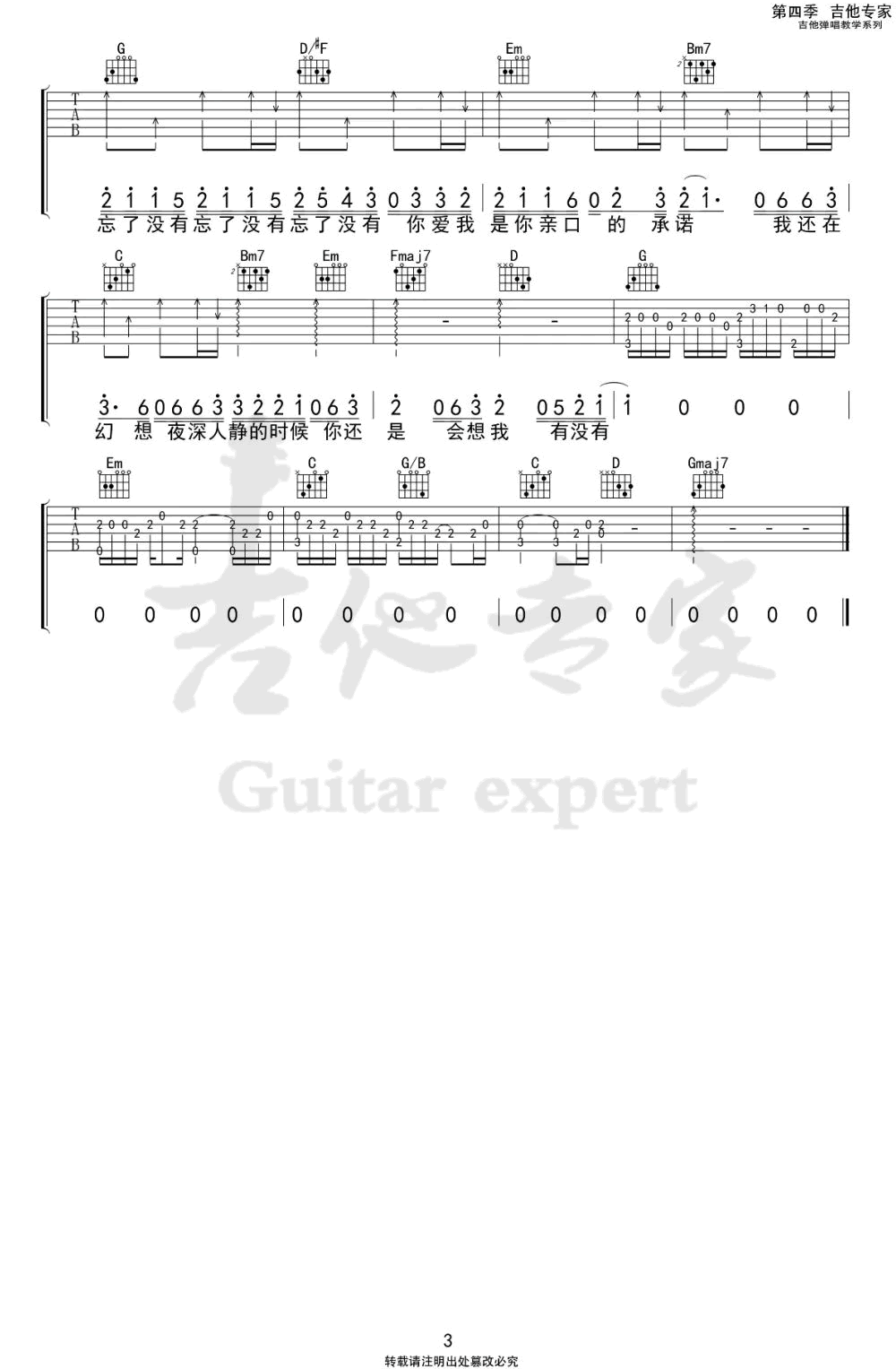 《王靖雯不胖《忘了没有吉他谱》(G调)》内容来自于互联网,不能保证内容的准确性与完整性,仅供学习交流欣赏,请勿用于其它用途,内容版权归原作者及来源网站所有,如有侵犯到您的权益请来信告知,我们将及时删除。
