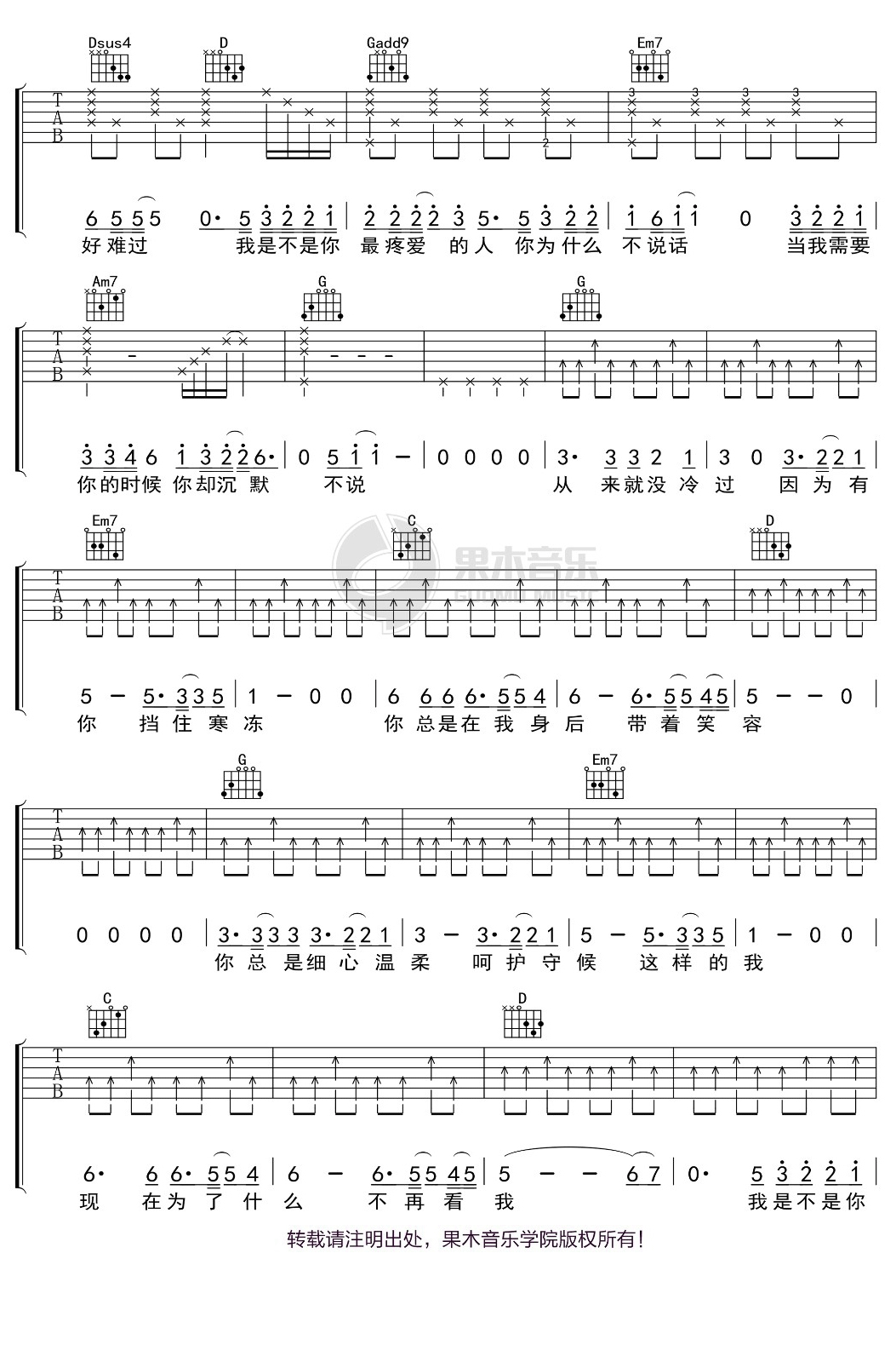 《潘越云《我是不是你最疼爱的人吉他谱》(G调)》内容来自于互联网,不能保证内容的准确性与完整性,仅供学习交流欣赏,请勿用于其它用途,内容版权归原作者及来源网站所有,如有侵犯到您的权益请来信告知,我们将及时删除。