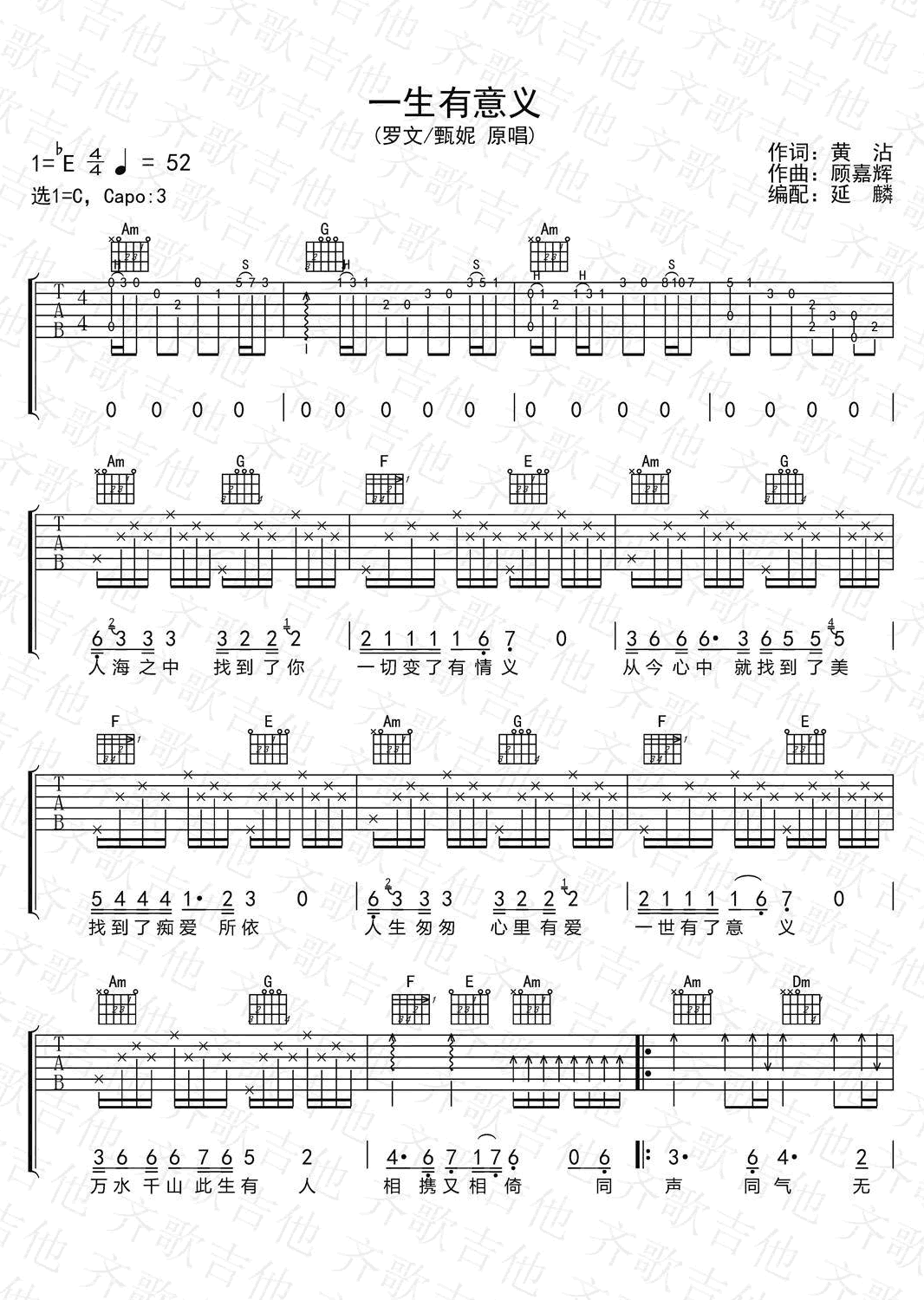 《罗文《一生有意义吉他谱》(C调)》内容来自于互联网,不能保证内容的准确性与完整性,仅供学习交流欣赏,请勿用于其它用途,内容版权归原作者及来源网站所有,如有侵犯到您的权益请来信告知,我们将及时删除。