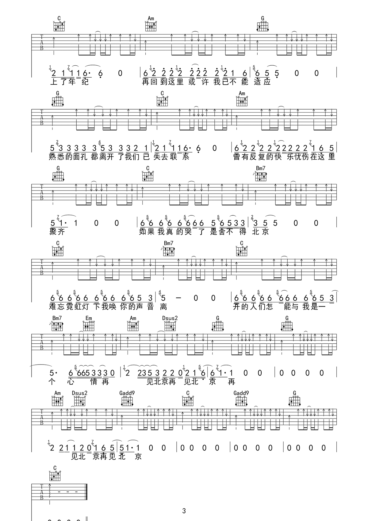 《赵雷《再见北京吉他谱》(G调)》内容来自于互联网,不能保证内容的准确性与完整性,仅供学习交流欣赏,请勿用于其它用途,内容版权归原作者及来源网站所有,如有侵犯到您的权益请来信告知,我们将及时删除。