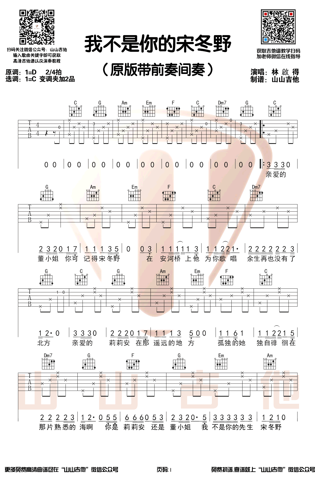 本文标题 《宋冬野《我不是你的宋冬野吉他谱》(C调)》,网址:https://www.21qupu.com/guitar/15452.html