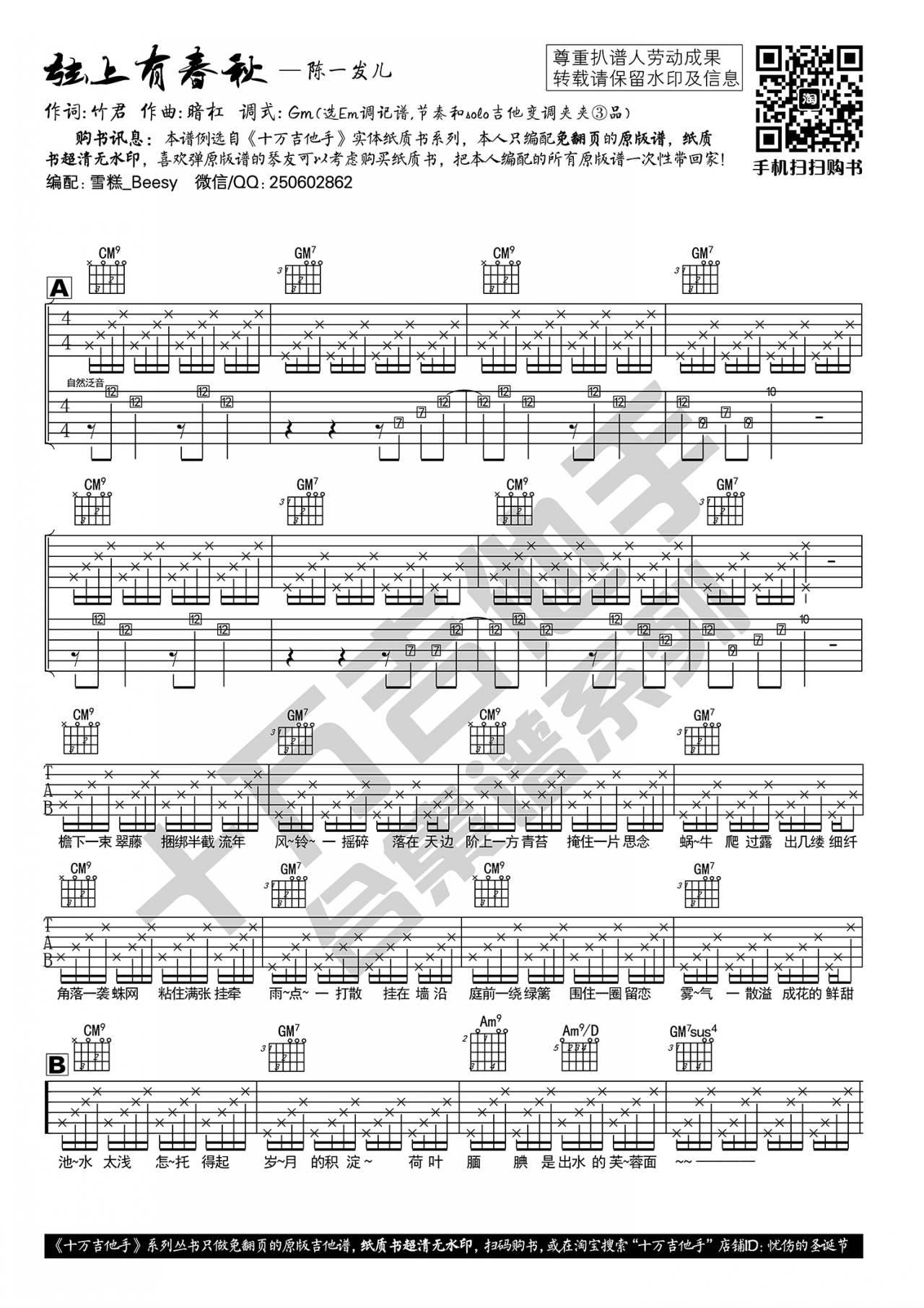 《暗杠《弦上有春秋吉他谱》》内容来自于互联网,不能保证内容的准确性与完整性,仅供学习交流欣赏,请勿用于其它用途,内容版权归原作者及来源网站所有,如有侵犯到您的权益请来信告知,我们将及时删除。