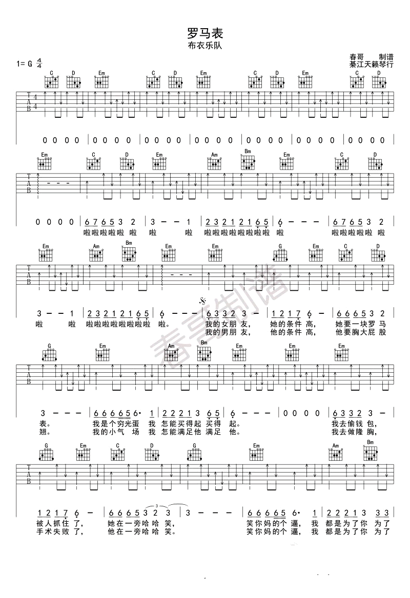 《布衣乐队《罗马表吉他谱》(G调)》内容来自于互联网,不能保证内容的准确性与完整性,仅供学习交流欣赏,请勿用于其它用途,内容版权归原作者及来源网站所有,如有侵犯到您的权益请来信告知,我们将及时删除。
