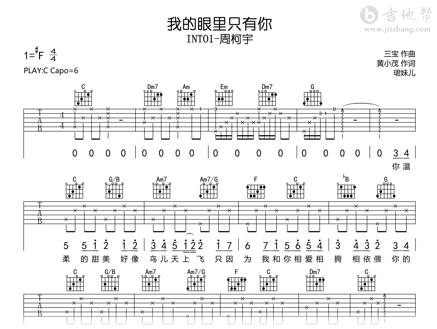 《INTO1的周柯宇《我的眼里只有你吉他谱》(C调)》内容来自于互联网,不能保证内容的准确性与完整性,仅供学习交流欣赏,请勿用于其它用途,内容版权归原作者及来源网站所有,如有侵犯到您的权益请来信告知,我们将及时删除。