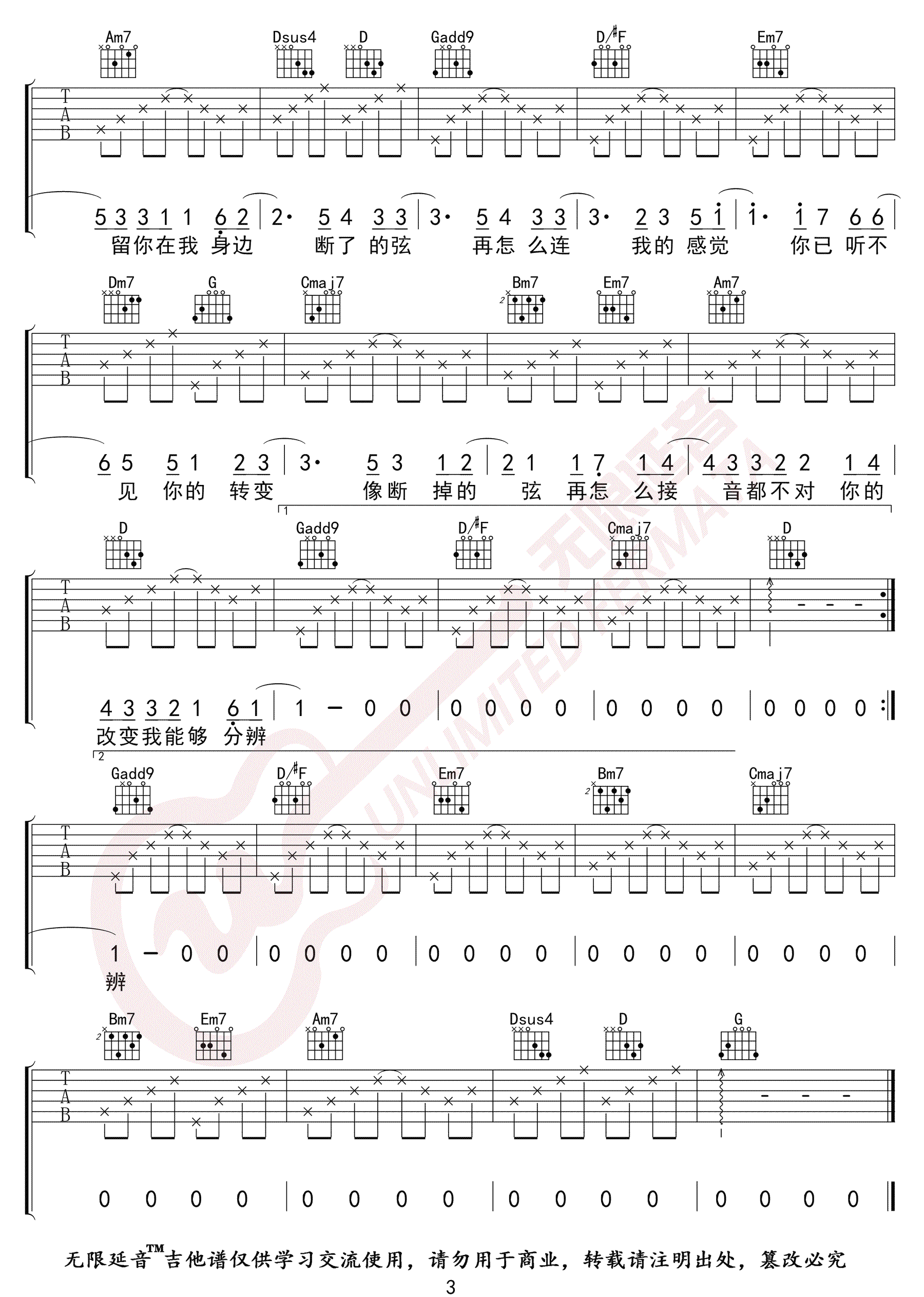 《周杰伦《断了的弦吉他谱》(G调)》内容来自于互联网,不能保证内容的准确性与完整性,仅供学习交流欣赏,请勿用于其它用途,内容版权归原作者及来源网站所有,如有侵犯到您的权益请来信告知,我们将及时删除。