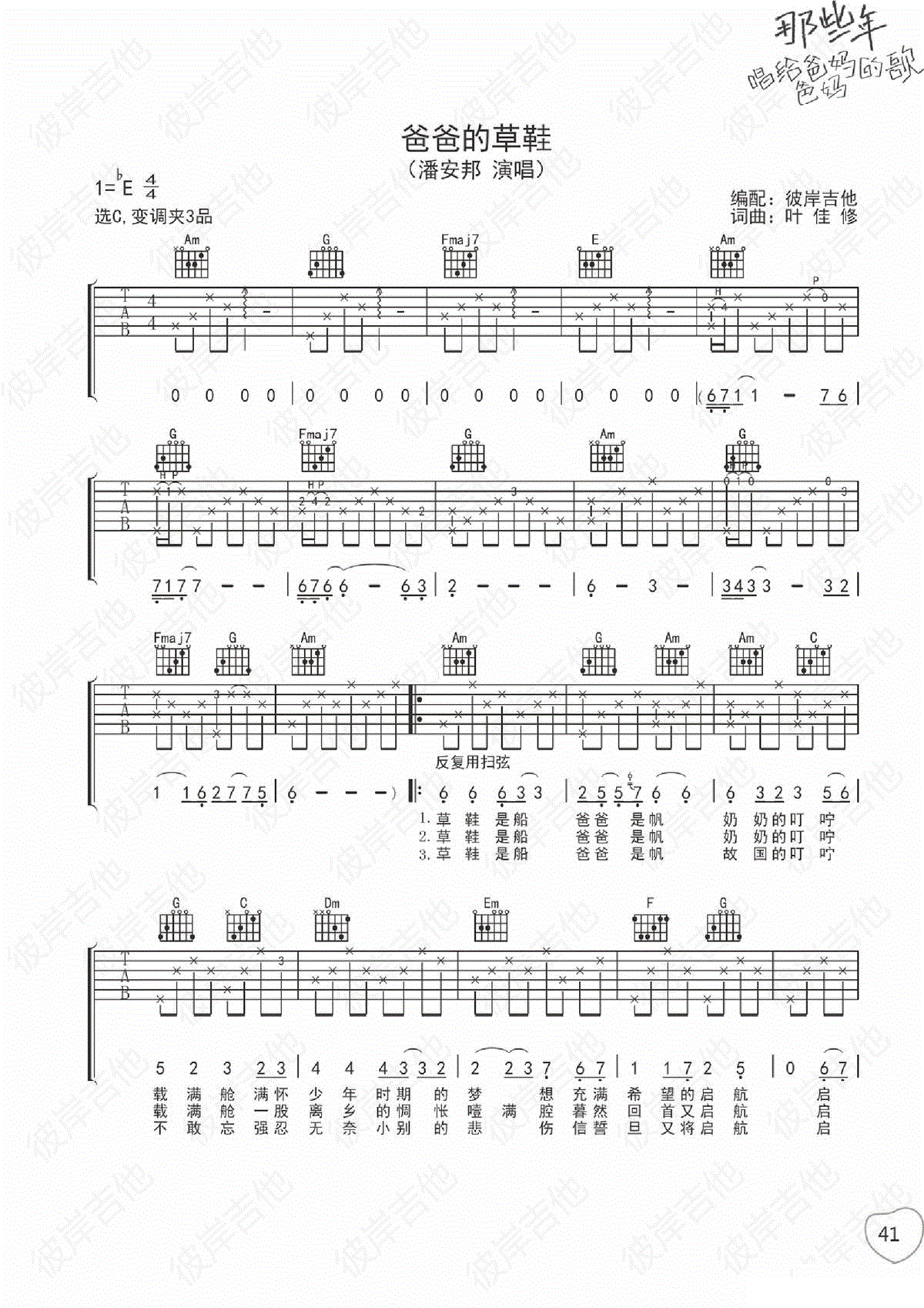 《潘安邦《爸爸的草鞋吉他谱》(C调)》内容来自于互联网,不能保证内容的准确性与完整性,仅供学习交流欣赏,请勿用于其它用途,内容版权归原作者及来源网站所有,如有侵犯到您的权益请来信告知,我们将及时删除。
