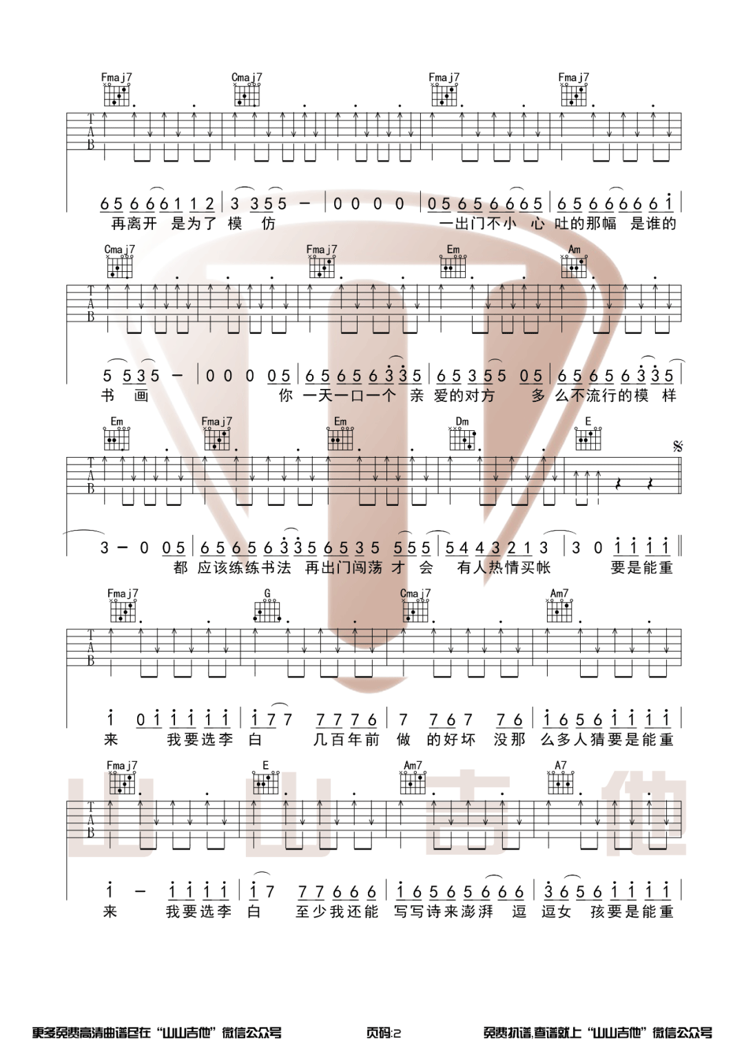 《李荣浩《李白吉他谱》(C调)》内容来自于互联网,不能保证内容的准确性与完整性,仅供学习交流欣赏,请勿用于其它用途,内容版权归原作者及来源网站所有,如有侵犯到您的权益请来信告知,我们将及时删除。