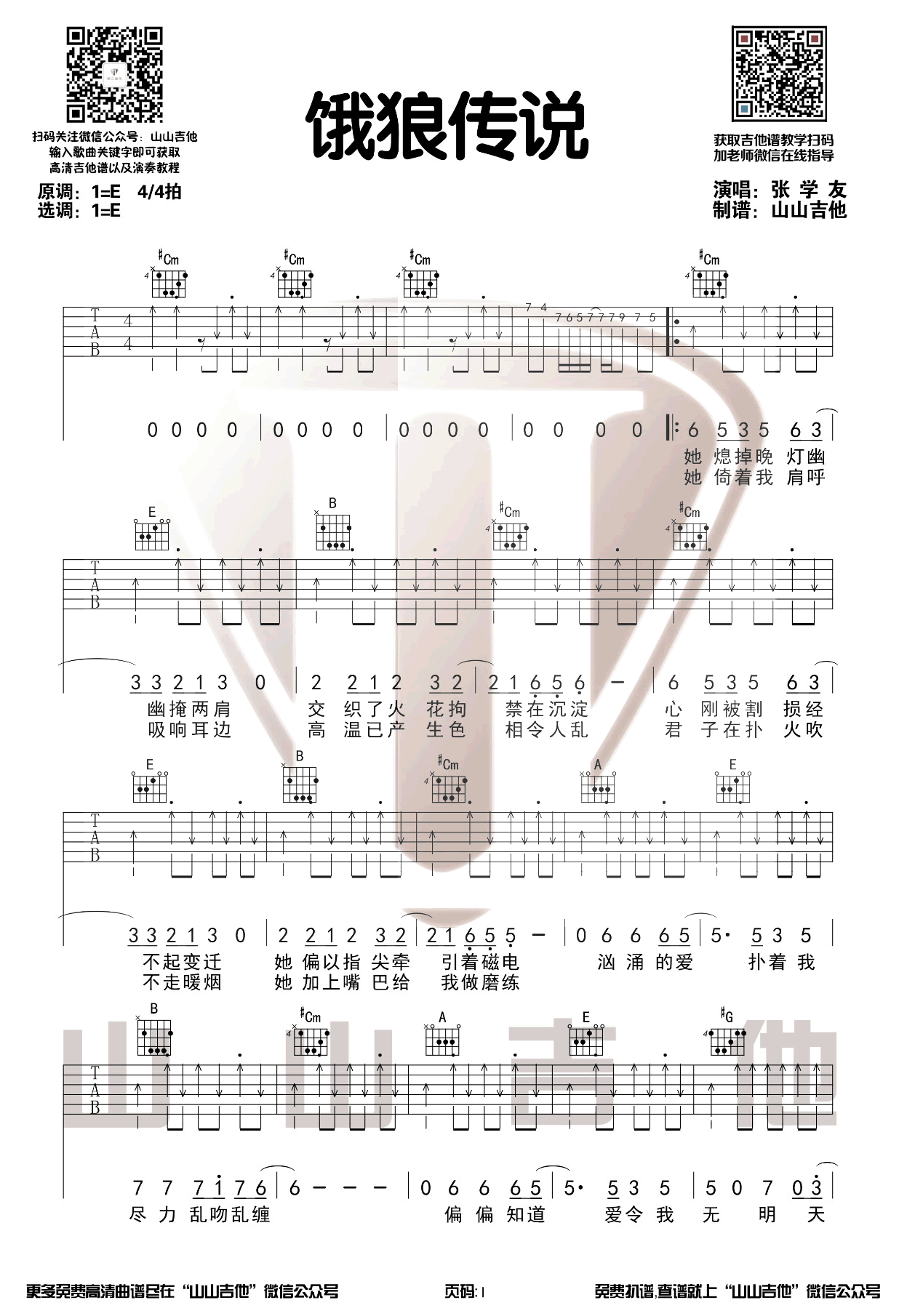 《张学友《饿狼传说吉他谱》(E调)》内容来自于互联网,不能保证内容的准确性与完整性,仅供学习交流欣赏,请勿用于其它用途,内容版权归原作者及来源网站所有,如有侵犯到您的权益请来信告知,我们将及时删除。