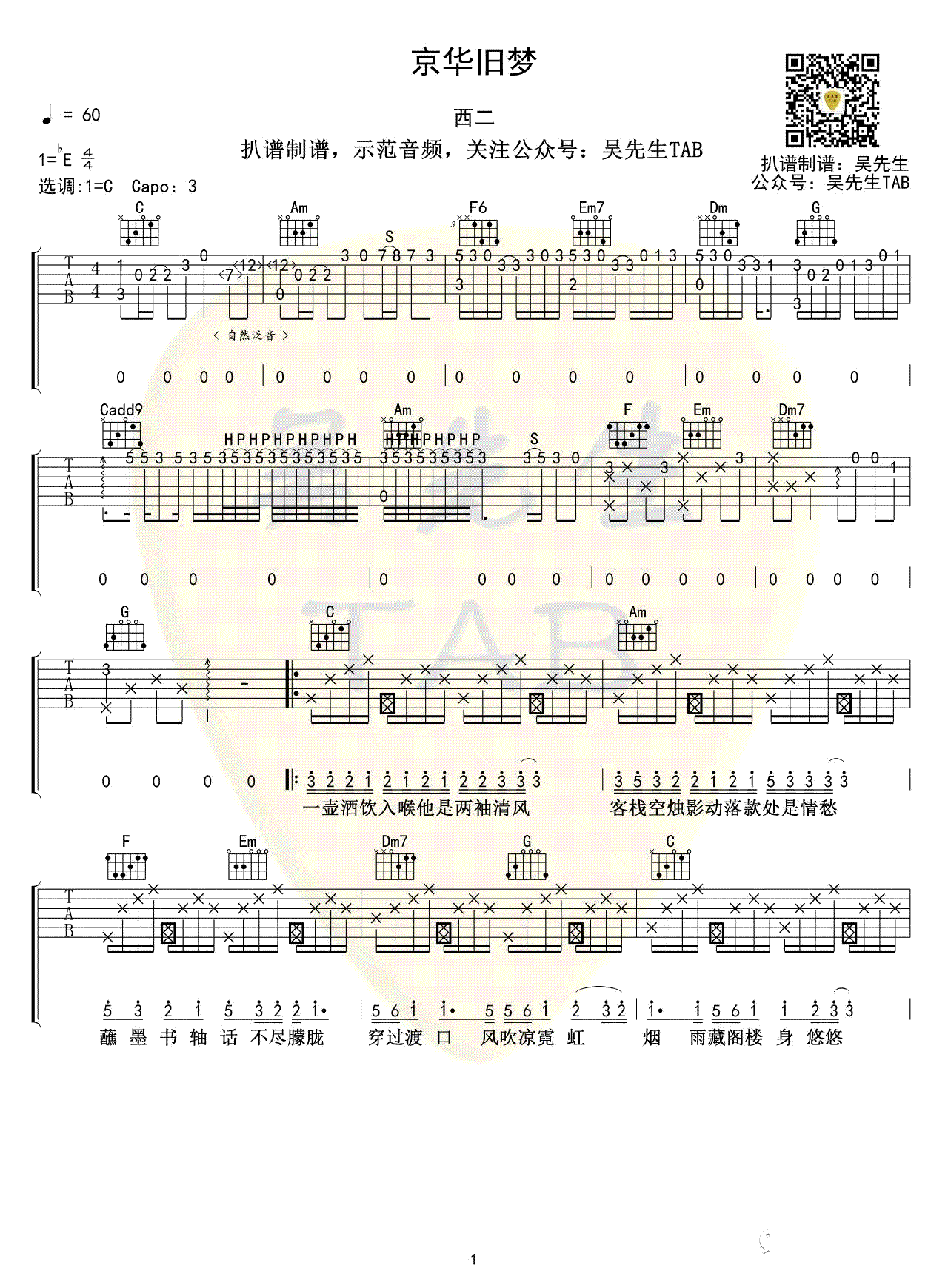 《西二《京华旧梦吉他谱》(C调)》内容来自于互联网,不能保证内容的准确性与完整性,仅供学习交流欣赏,请勿用于其它用途,内容版权归原作者及来源网站所有,如有侵犯到您的权益请来信告知,我们将及时删除。