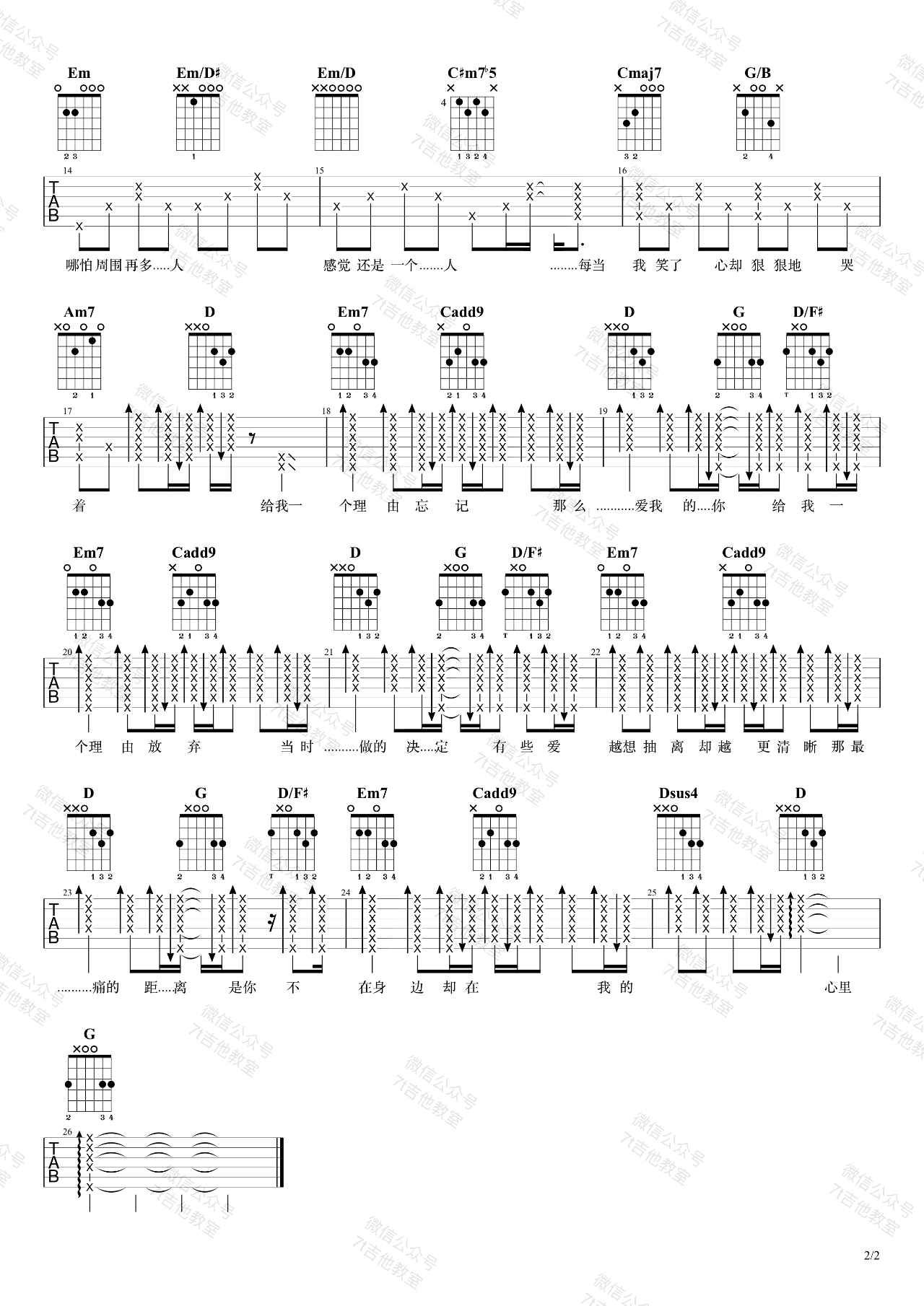 《黄丽玲《给我一个理由忘记吉他谱》(G调)》内容来自于互联网,不能保证内容的准确性与完整性,仅供学习交流欣赏,请勿用于其它用途,内容版权归原作者及来源网站所有,如有侵犯到您的权益请来信告知,我们将及时删除。