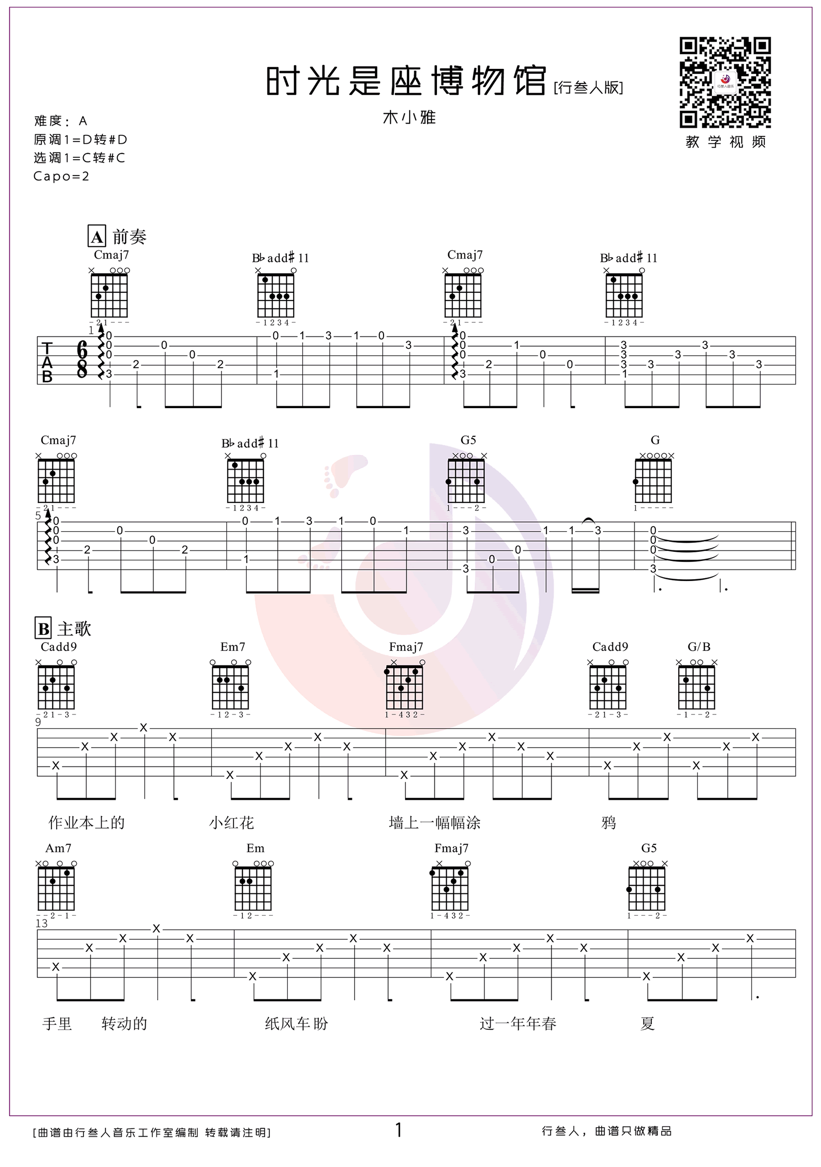 《时光是座博物馆》是由木小雅演唱的一首民谣歌曲,以C调吉他谱为基础,呈现为六线谱图。歌曲深情诉说了时光流逝,勾勒出珍贵回忆的主题。歌中歌词“放学后早早回家,有外婆在等我啊”让人情感涌上心头。时光匆匆,珍贵的人、事、物都随之流逝,然而,在我们的心灵博物馆中,它们