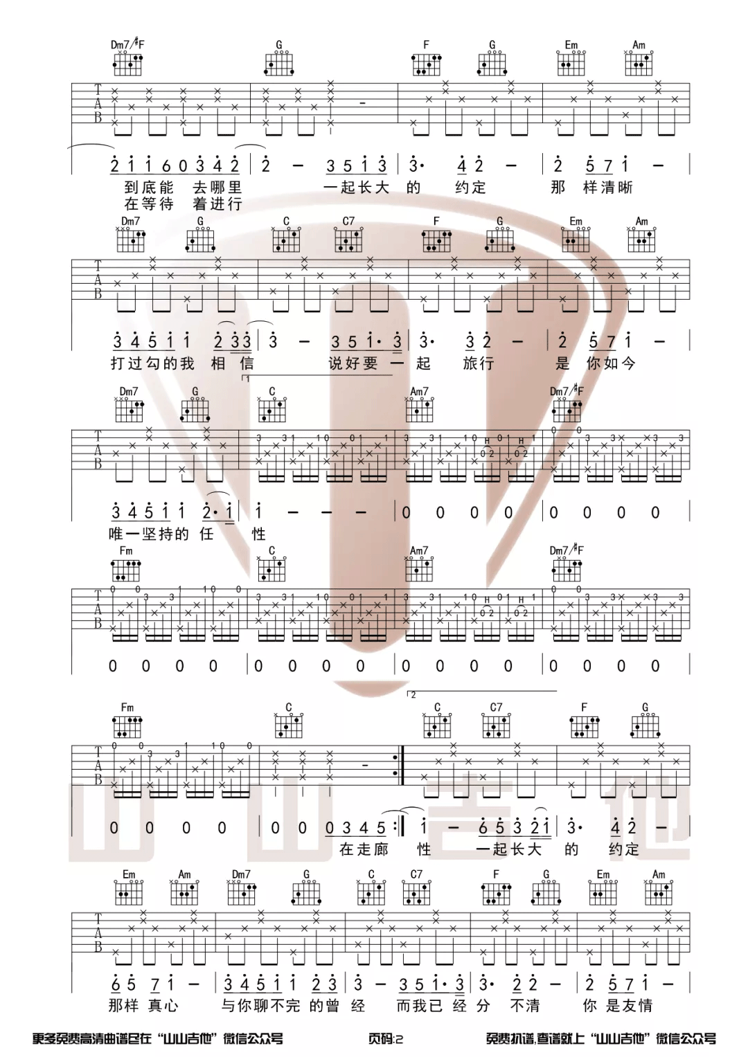 《周杰伦《蒲公英的约定吉他谱》(C调)》内容来自于互联网,不能保证内容的准确性与完整性,仅供学习交流欣赏,请勿用于其它用途,内容版权归原作者及来源网站所有,如有侵犯到您的权益请来信告知,我们将及时删除。