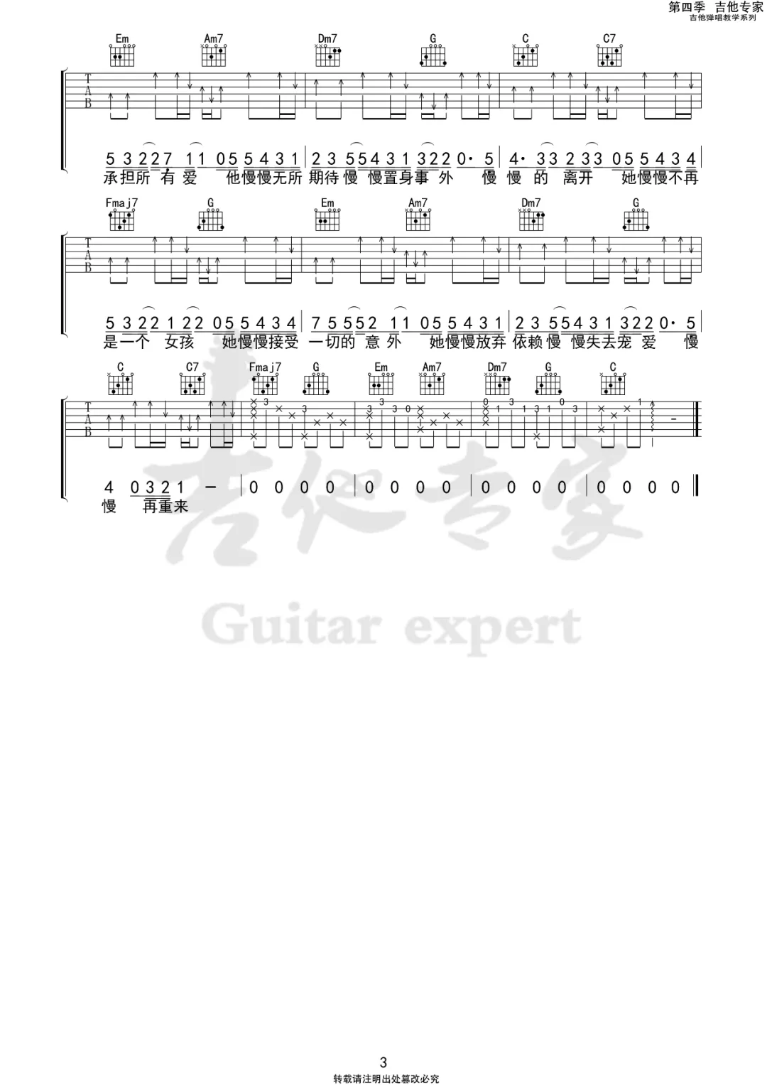 《时光流逝《慢慢吉他谱》(C调)》内容来自于互联网,不能保证内容的准确性与完整性,仅供学习交流欣赏,请勿用于其它用途,内容版权归原作者及来源网站所有,如有侵犯到您的权益请来信告知,我们将及时删除。