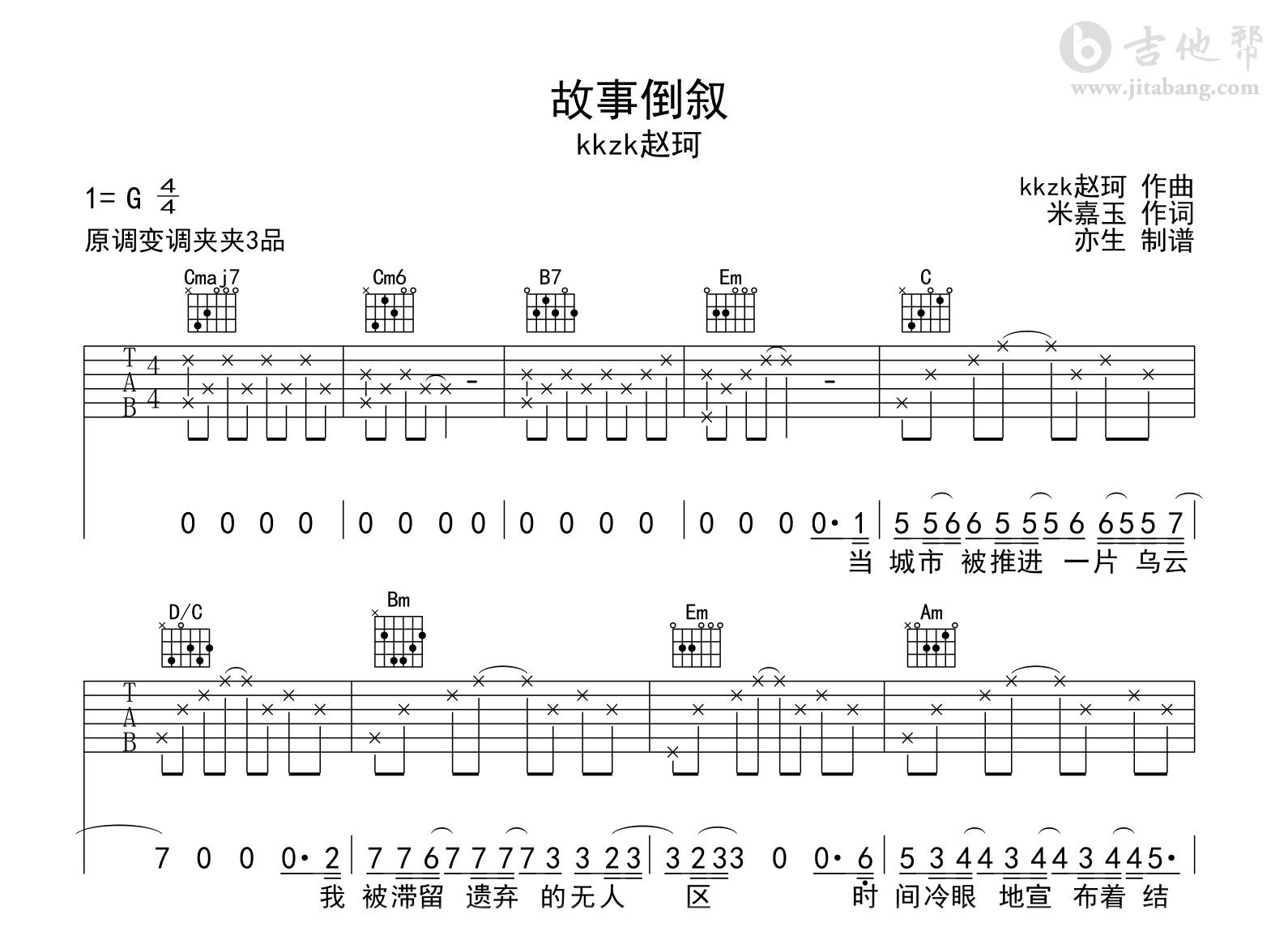 kkzk赵珂《故事倒叙吉他谱》(G调)