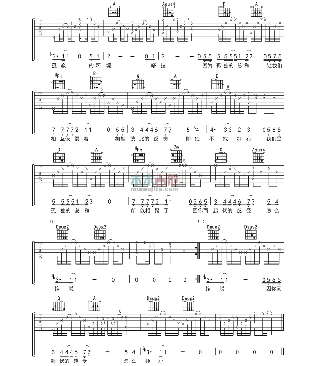 《吴汶芳《孤独的总和吉他谱》》内容来自于互联网,不能保证内容的准确性与完整性,仅供学习交流欣赏,请勿用于其它用途,内容版权归原作者及来源网站所有,如有侵犯到您的权益请来信告知,我们将及时删除。