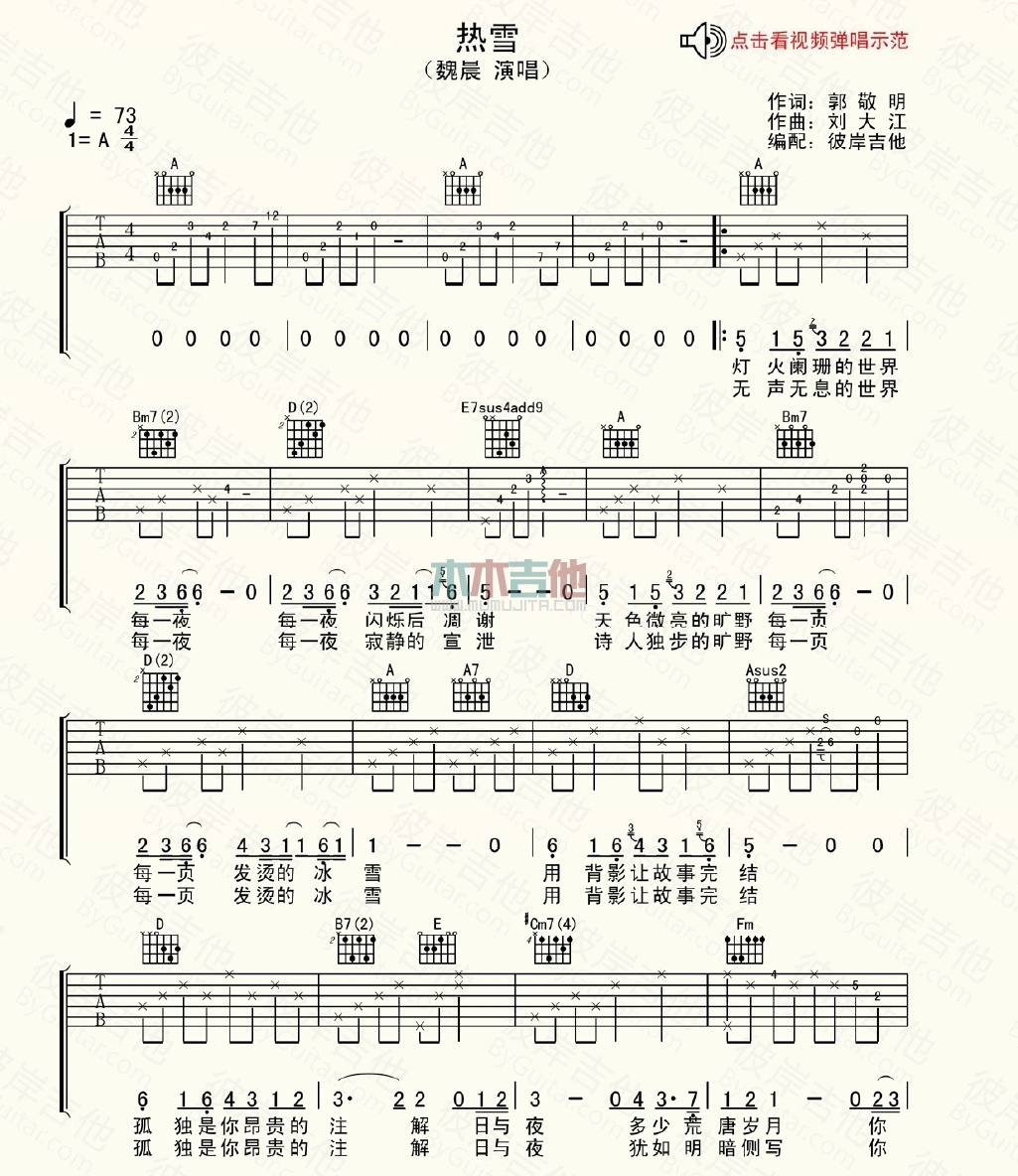 《魏晨《热雪吉他谱》》内容来自于互联网,不能保证内容的准确性与完整性,仅供学习交流欣赏,请勿用于其它用途,内容版权归原作者及来源网站所有,如有侵犯到您的权益请来信告知,我们将及时删除。