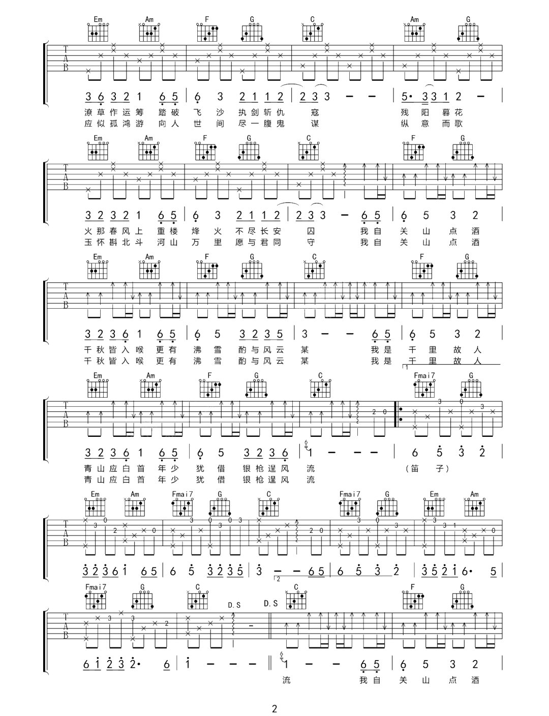 《等什么君《关山酒吉他谱》(C调)》内容来自于互联网,不能保证内容的准确性与完整性,仅供学习交流欣赏,请勿用于其它用途,内容版权归原作者及来源网站所有,如有侵犯到您的权益请来信告知,我们将及时删除。
