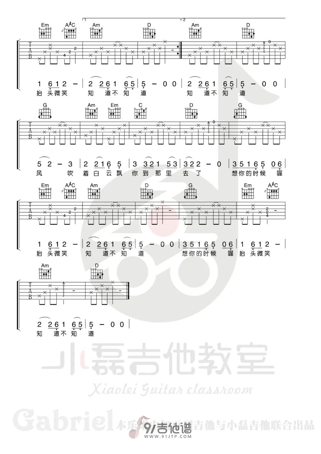 《刘若英《知道不知道吉他谱》(G调)》内容来自于互联网,不能保证内容的准确性与完整性,仅供学习交流欣赏,请勿用于其它用途,内容版权归原作者及来源网站所有,如有侵犯到您的权益请来信告知,我们将及时删除。