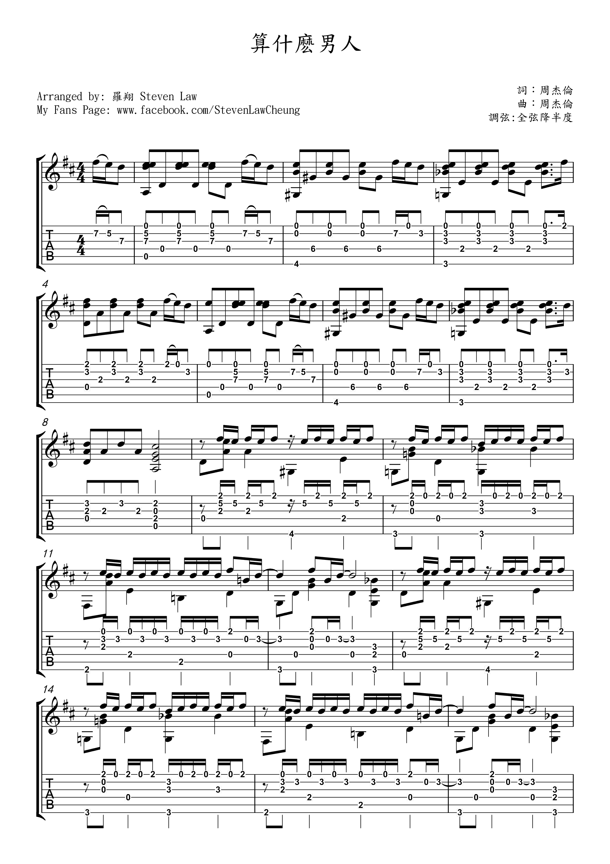 《周杰伦《算什么男人 指弹吉他谱》》内容来自于互联网,不能保证内容的准确性与完整性,仅供学习交流欣赏,请勿用于其它用途,内容版权归原作者及来源网站所有,如有侵犯到您的权益请来信告知,我们将及时删除。