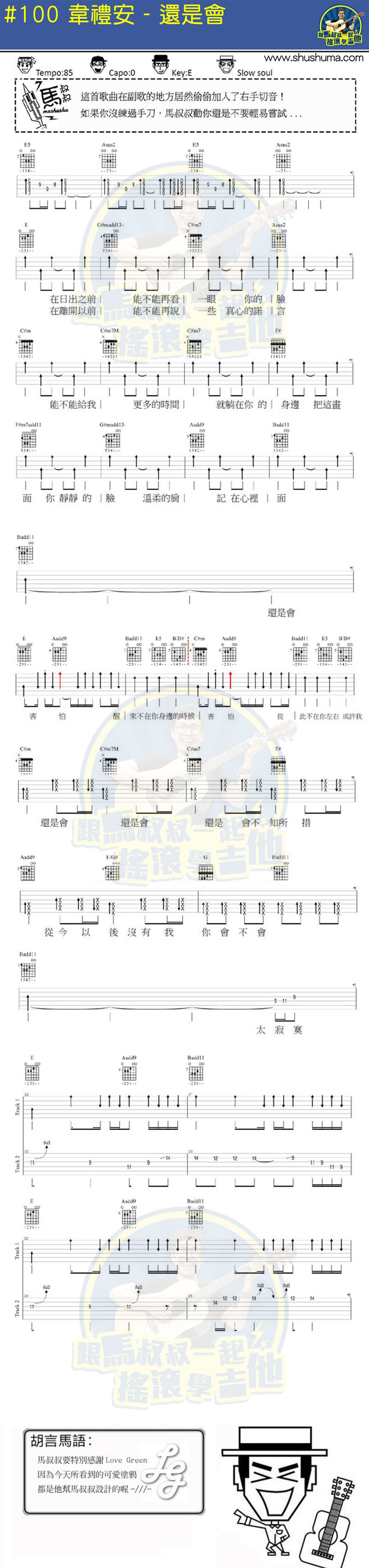 《韦礼安《还是会吉他谱》》内容来自于互联网,不能保证内容的准确性与完整性,仅供学习交流欣赏,请勿用于其它用途,内容版权归原作者及来源网站所有,如有侵犯到您的权益请来信告知,我们将及时删除。