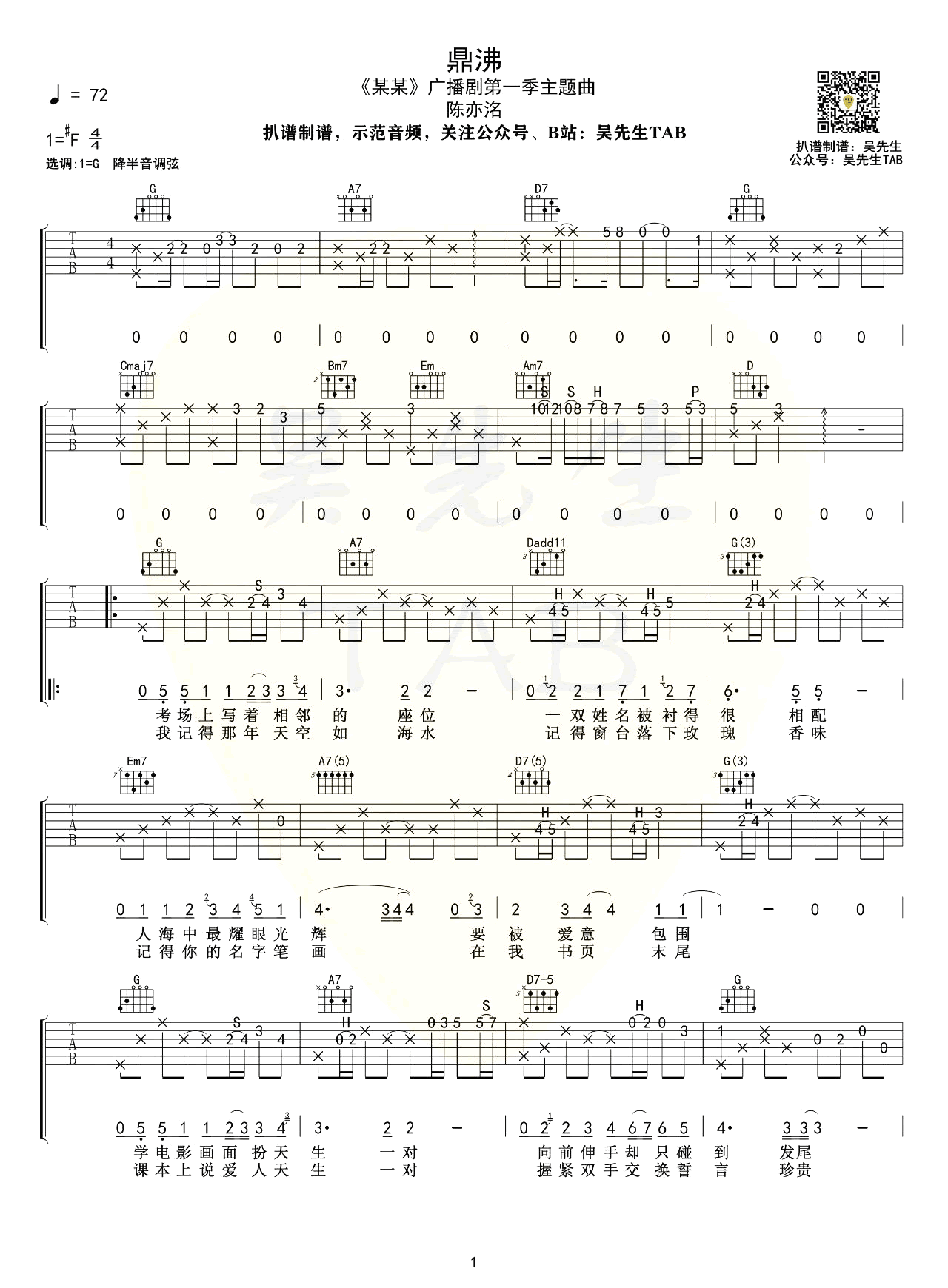 《陈亦洺《鼎沸吉他谱》(G调)》内容来自于互联网,不能保证内容的准确性与完整性,仅供学习交流欣赏,请勿用于其它用途,内容版权归原作者及来源网站所有,如有侵犯到您的权益请来信告知,我们将及时删除。