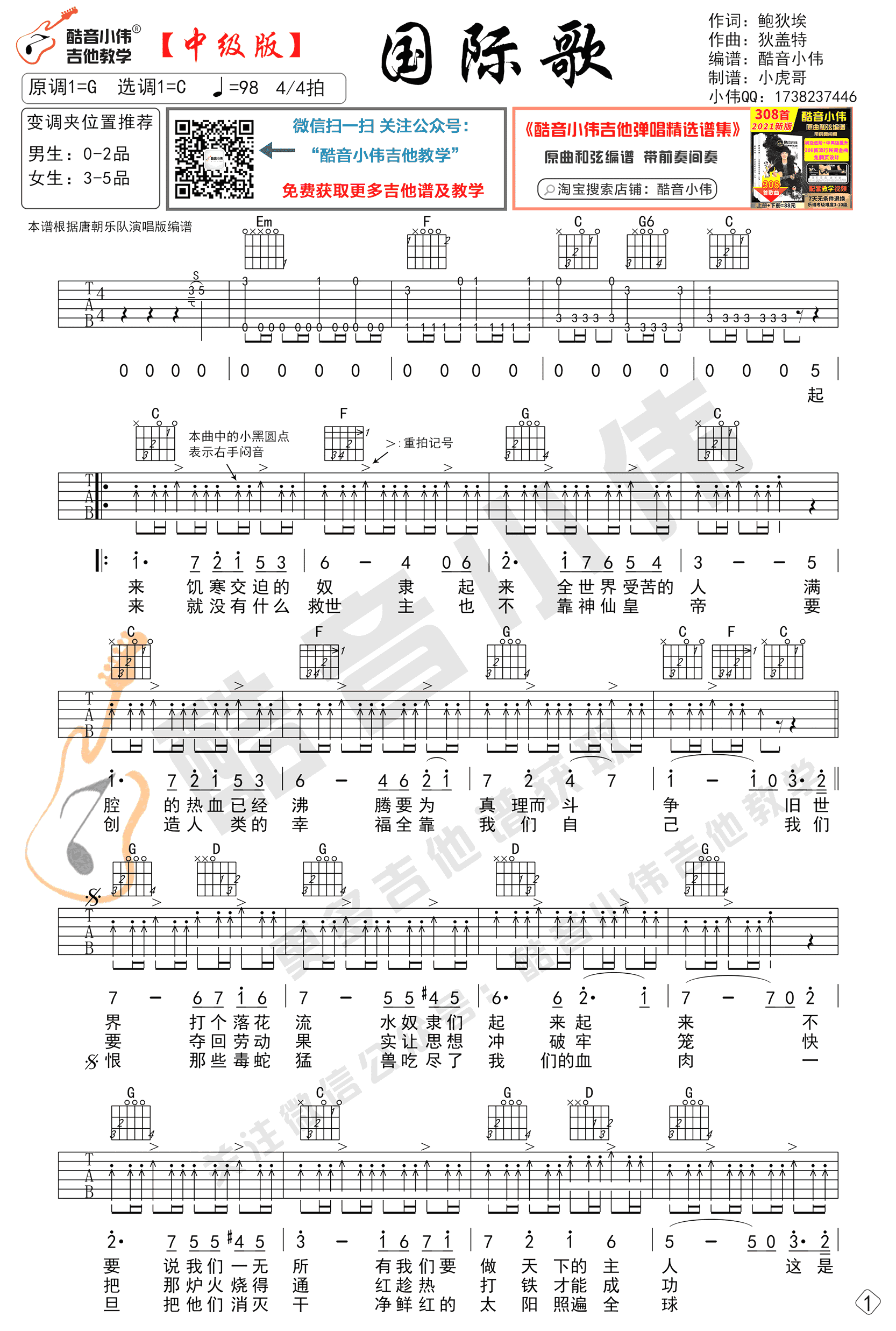 《唐朝乐队《国际歌吉他谱》(C调)》内容来自于互联网,不能保证内容的准确性与完整性,仅供学习交流欣赏,请勿用于其它用途,内容版权归原作者及来源网站所有,如有侵犯到您的权益请来信告知,我们将及时删除。