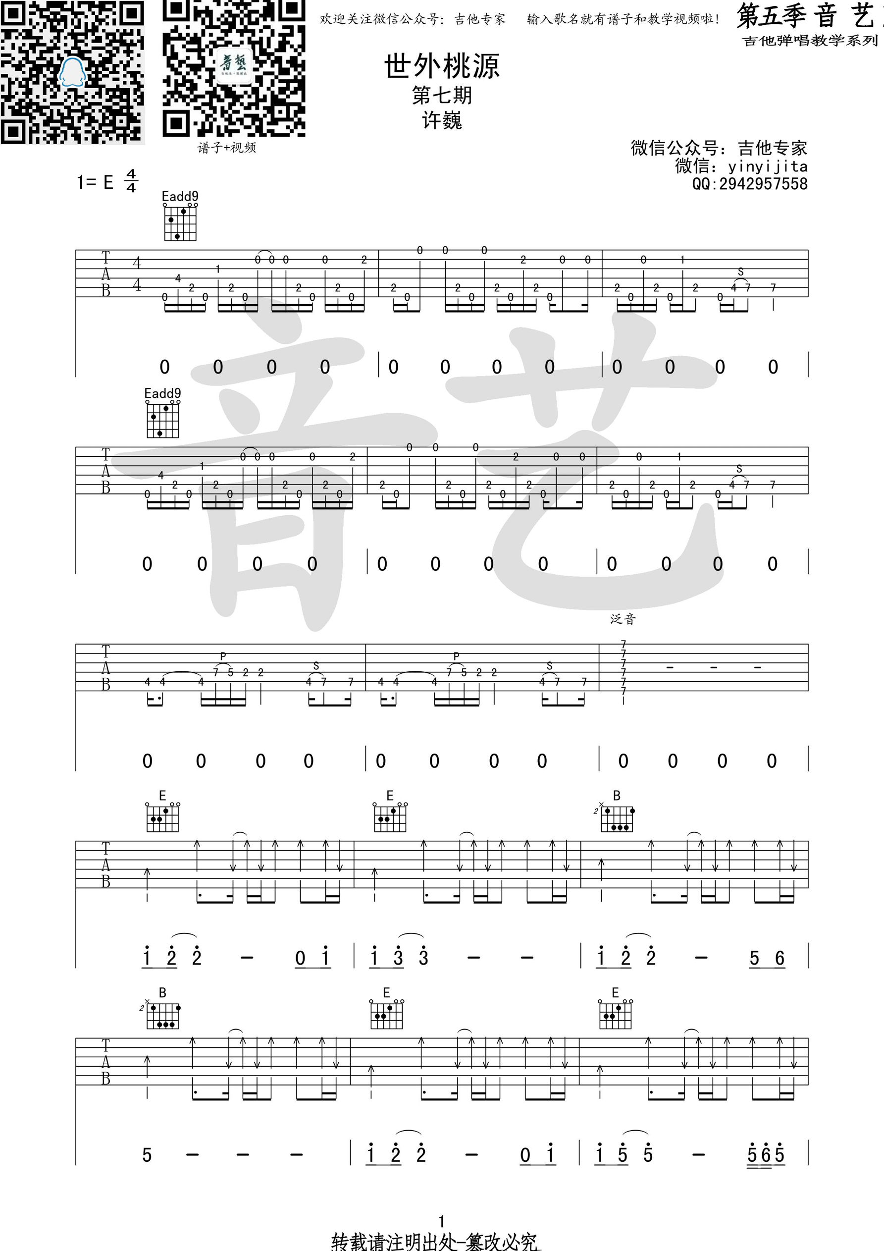 《许巍《世外桃源吉他谱》》内容来自于互联网,不能保证内容的准确性与完整性,仅供学习交流欣赏,请勿用于其它用途,内容版权归原作者及来源网站所有,如有侵犯到您的权益请来信告知,我们将及时删除。