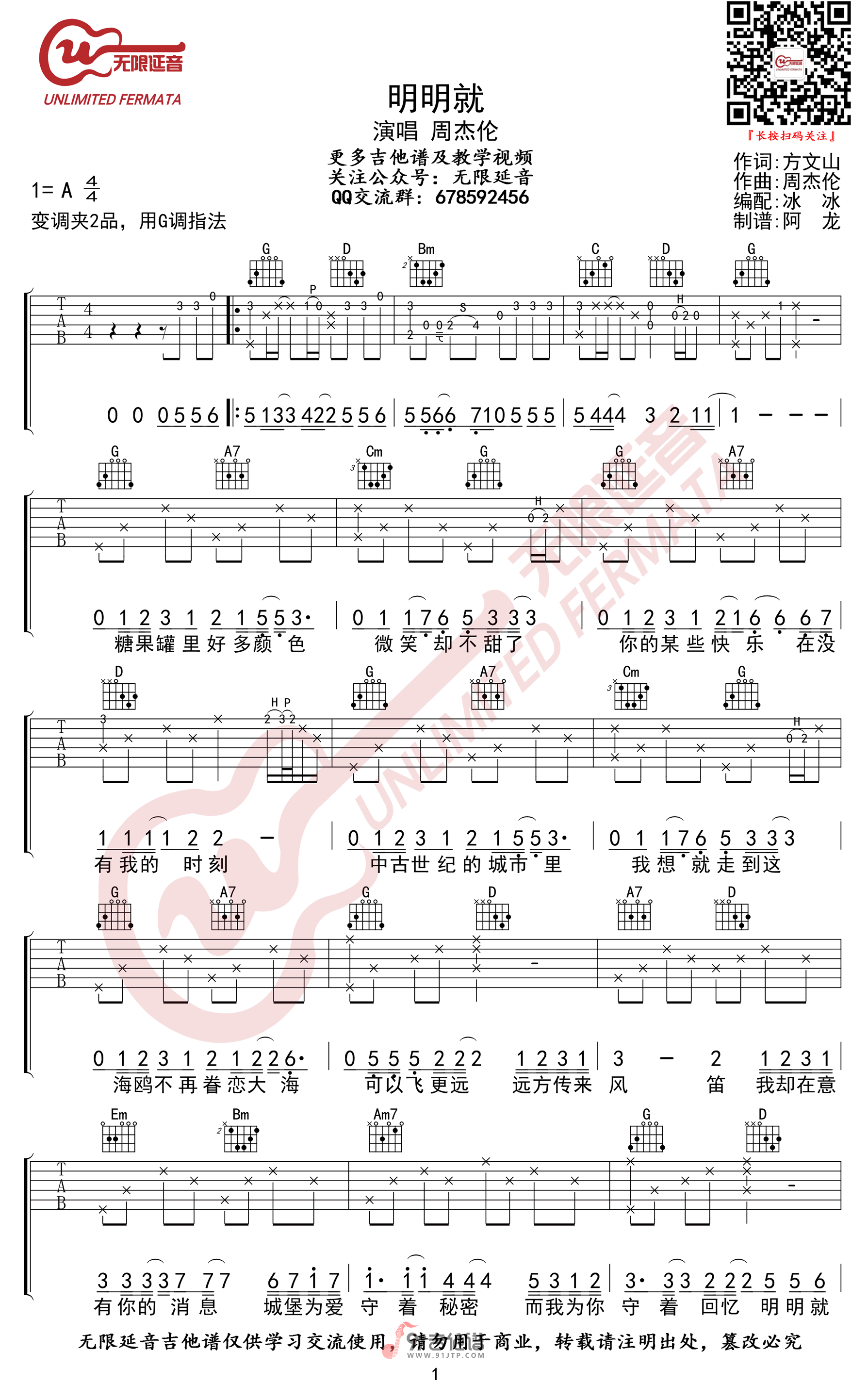 《周杰伦《明明就吉他谱》(G调)》内容来自于互联网,不能保证内容的准确性与完整性,仅供学习交流欣赏,请勿用于其它用途,内容版权归原作者及来源网站所有,如有侵犯到您的权益请来信告知,我们将及时删除。