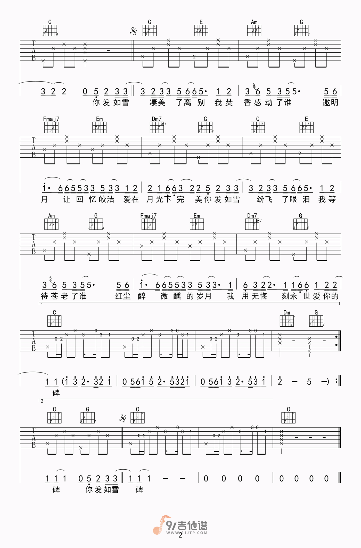 《周杰伦《发如雪吉他谱》(C调)》内容来自于互联网,不能保证内容的准确性与完整性,仅供学习交流欣赏,请勿用于其它用途,内容版权归原作者及来源网站所有,如有侵犯到您的权益请来信告知,我们将及时删除。
