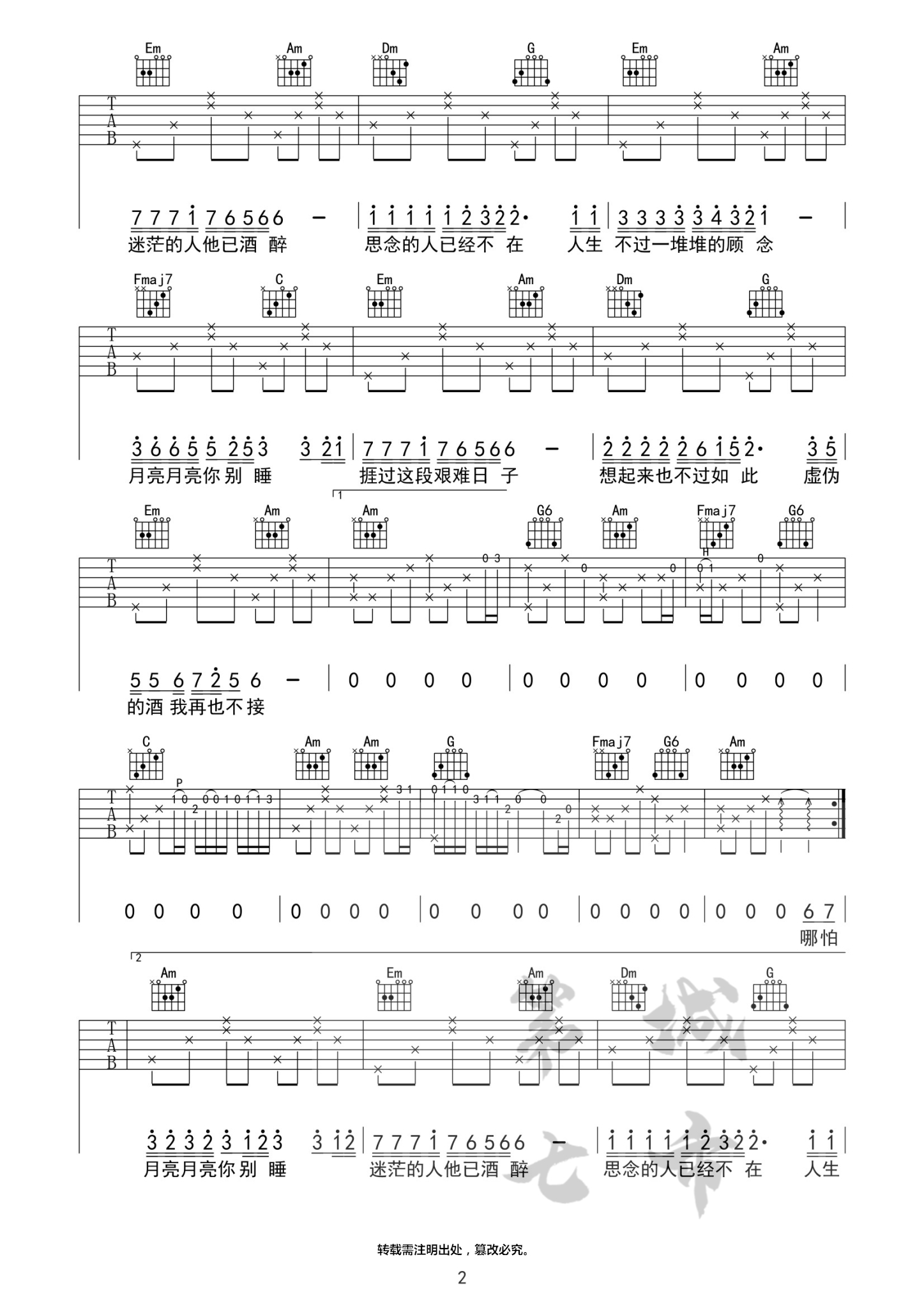 《阿木《不过人间吉他谱》(C调)》内容来自于互联网,不能保证内容的准确性与完整性,仅供学习交流欣赏,请勿用于其它用途,内容版权归原作者及来源网站所有,如有侵犯到您的权益请来信告知,我们将及时删除。