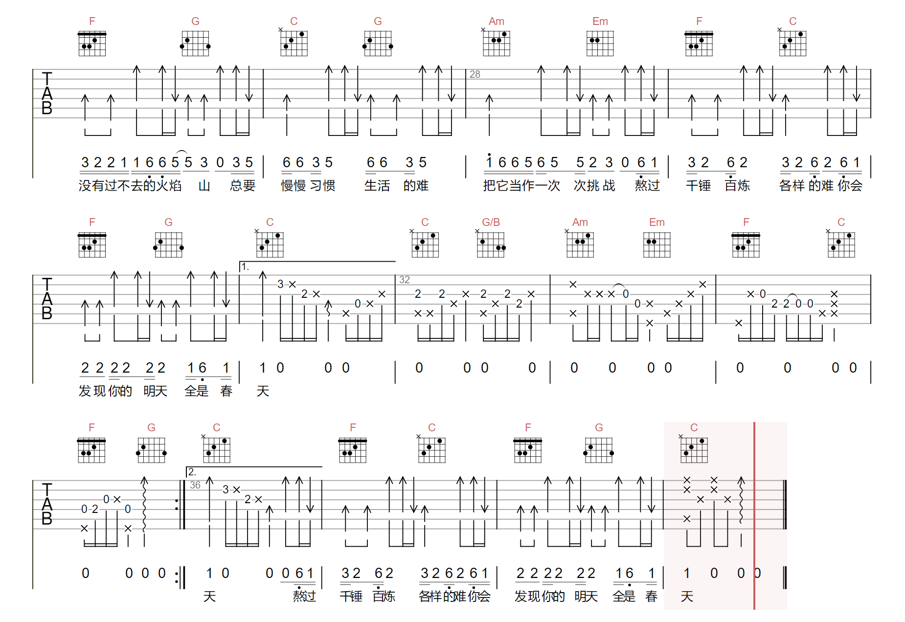 这首歌曲为西单女孩《原点吉他谱》(C调)