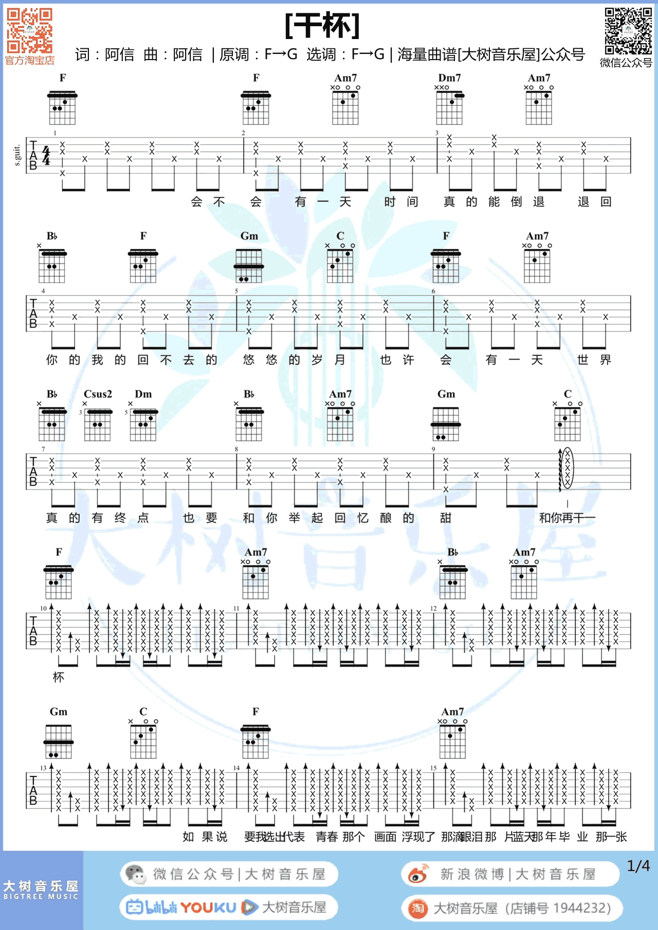 《五月天《干杯吉他谱》》内容来自于互联网,不能保证内容的准确性与完整性,仅供学习交流欣赏,请勿用于其它用途,内容版权归原作者及来源网站所有,如有侵犯到您的权益请来信告知,我们将及时删除。
