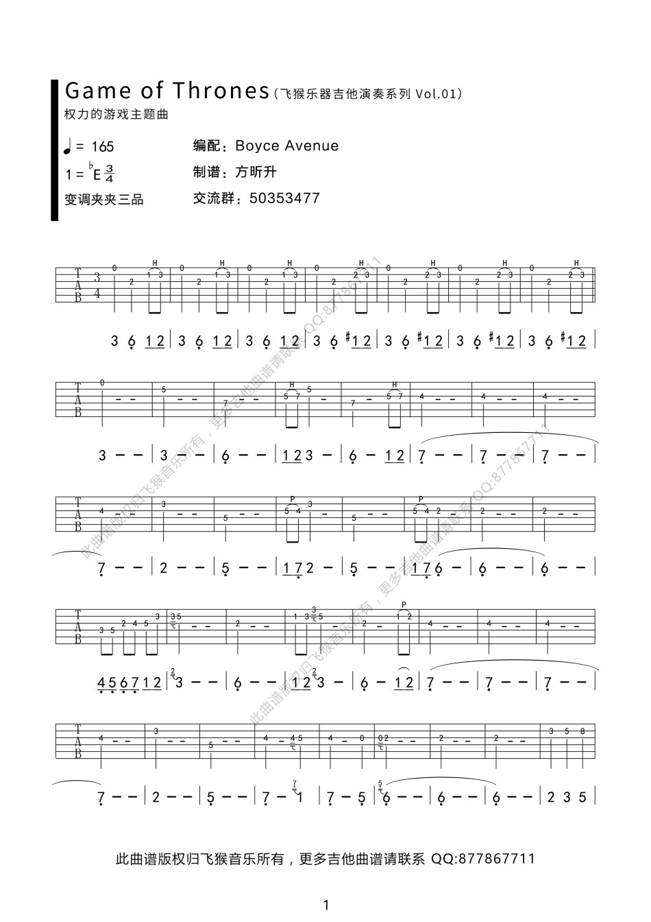 隐藏《Game Of Thrones 双吉他指弹吉他谱》(E调)