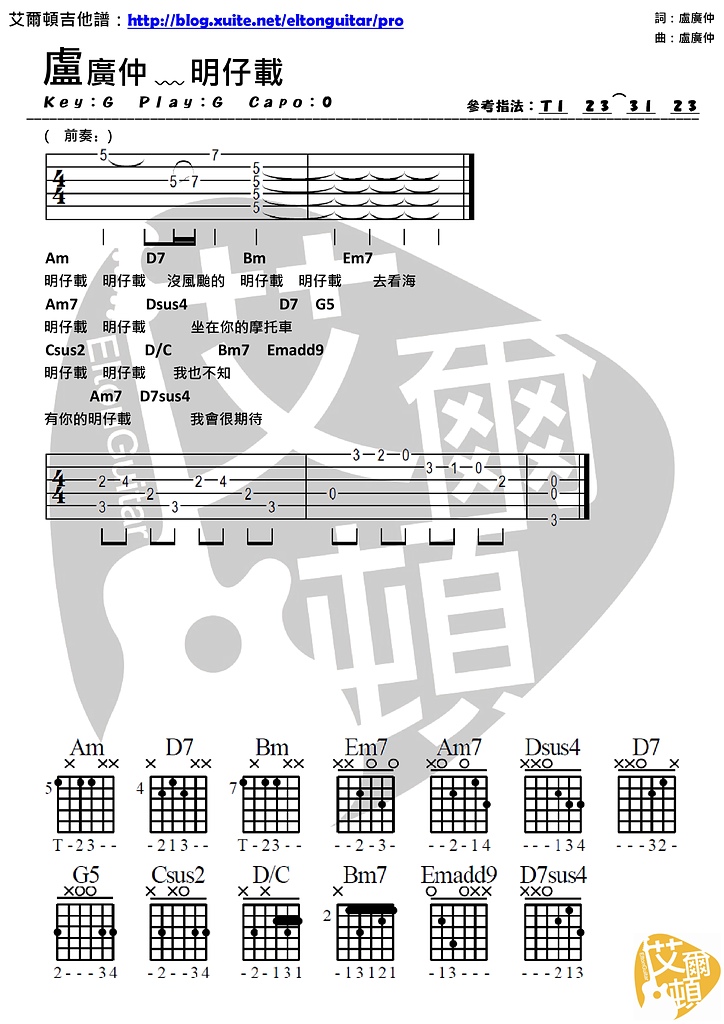 《卢广仲《明仔载吉他谱》》内容来自于互联网,不能保证内容的准确性与完整性,仅供学习交流欣赏,请勿用于其它用途,内容版权归原作者及来源网站所有,如有侵犯到您的权益请来信告知,我们将及时删除。