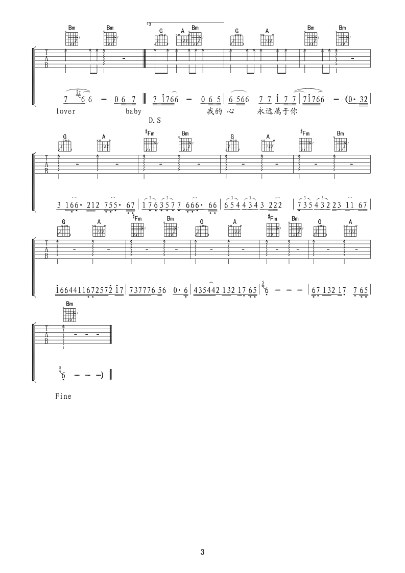广东雨神《三年的赌注吉他谱》(C调)