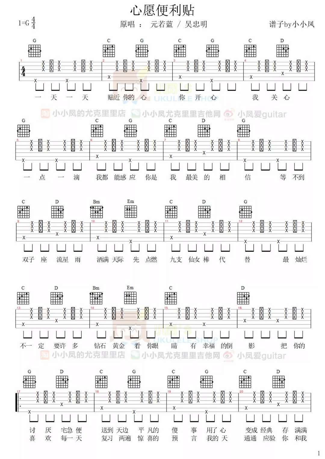 《元若蓝《心愿便利贴吉他谱》(G调)》内容来自于互联网,不能保证内容的准确性与完整性,仅供学习交流欣赏,请勿用于其它用途,内容版权归原作者及来源网站所有,如有侵犯到您的权益请来信告知,我们将及时删除。