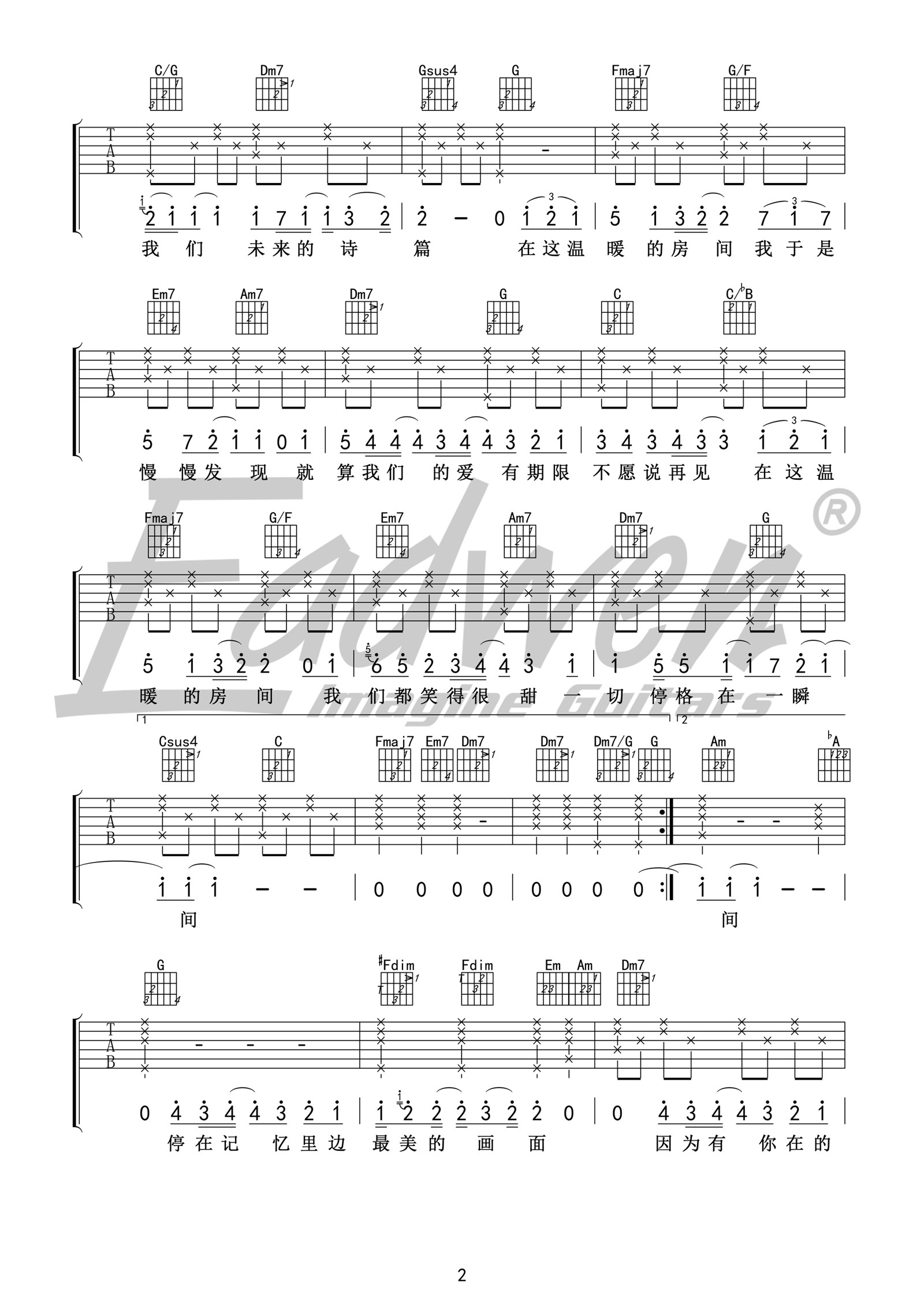 《《房间吉他谱》(C调)》内容来自于互联网,不能保证内容的准确性与完整性,仅供学习交流欣赏,请勿用于其它用途,内容版权归原作者及来源网站所有,如有侵犯到您的权益请来信告知,我们将及时删除。