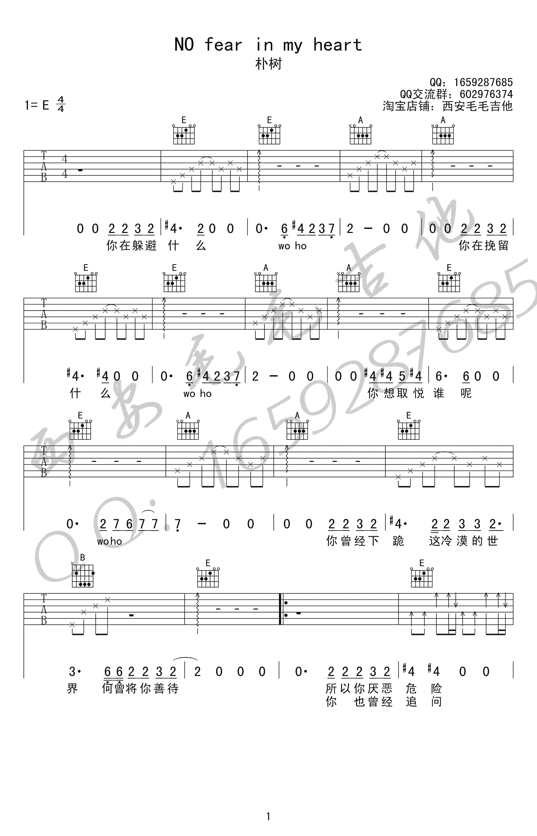 《my《No fear in heart吉他谱》(E调)》内容来自于互联网,不能保证内容的准确性与完整性,仅供学习交流欣赏,请勿用于其它用途,内容版权归原作者及来源网站所有,如有侵犯到您的权益请来信告知,我们将及时删除。
