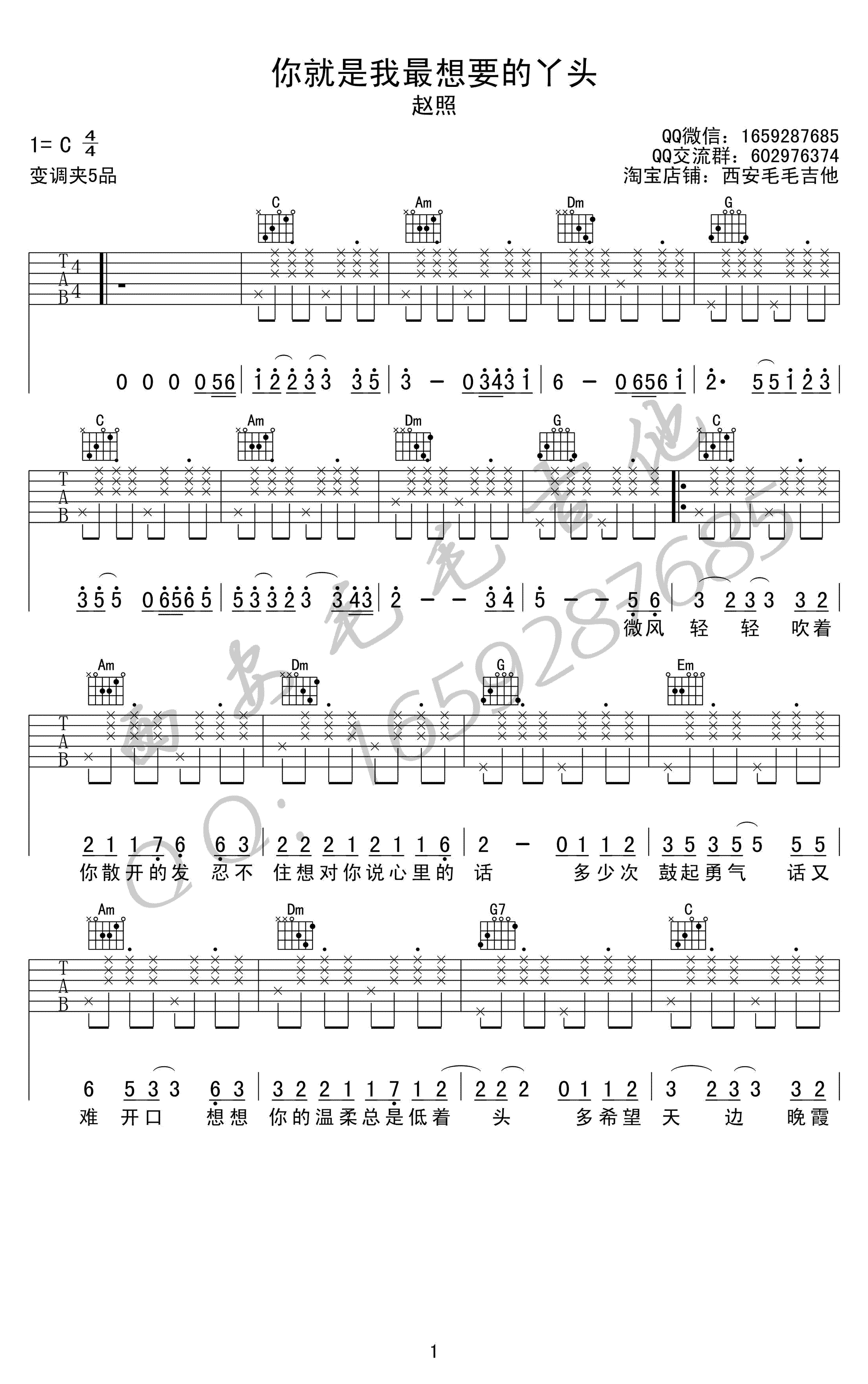 《赵照《你就是我最想要的丫头吉他谱》(C调)》内容来自于互联网,不能保证内容的准确性与完整性,仅供学习交流欣赏,请勿用于其它用途,内容版权归原作者及来源网站所有,如有侵犯到您的权益请来信告知,我们将及时删除。