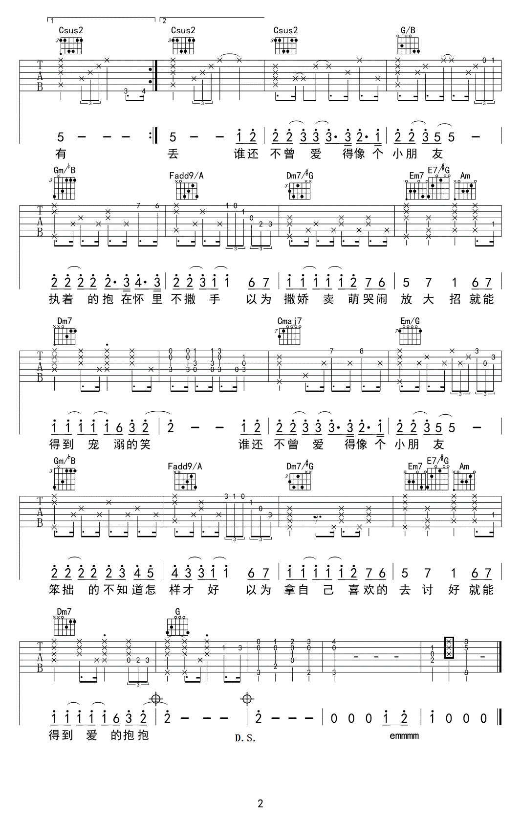 《《爱得像个小朋友吉他谱》(C调)》内容来自于互联网,不能保证内容的准确性与完整性,仅供学习交流欣赏,请勿用于其它用途,内容版权归原作者及来源网站所有,如有侵犯到您的权益请来信告知,我们将及时删除。
