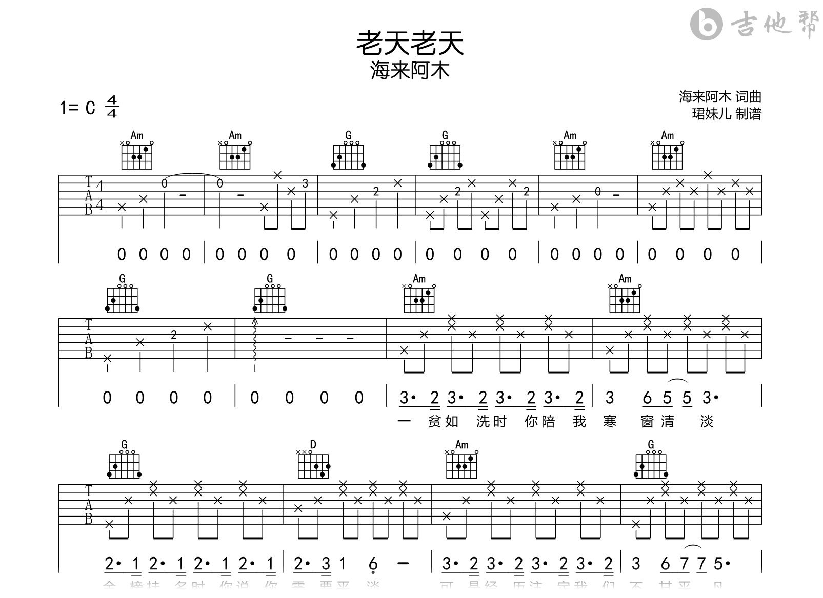 《阿木《老天老天吉他谱》(C调)》内容来自于互联网,不能保证内容的准确性与完整性,仅供学习交流欣赏,请勿用于其它用途,内容版权归原作者及来源网站所有,如有侵犯到您的权益请来信告知,我们将及时删除。