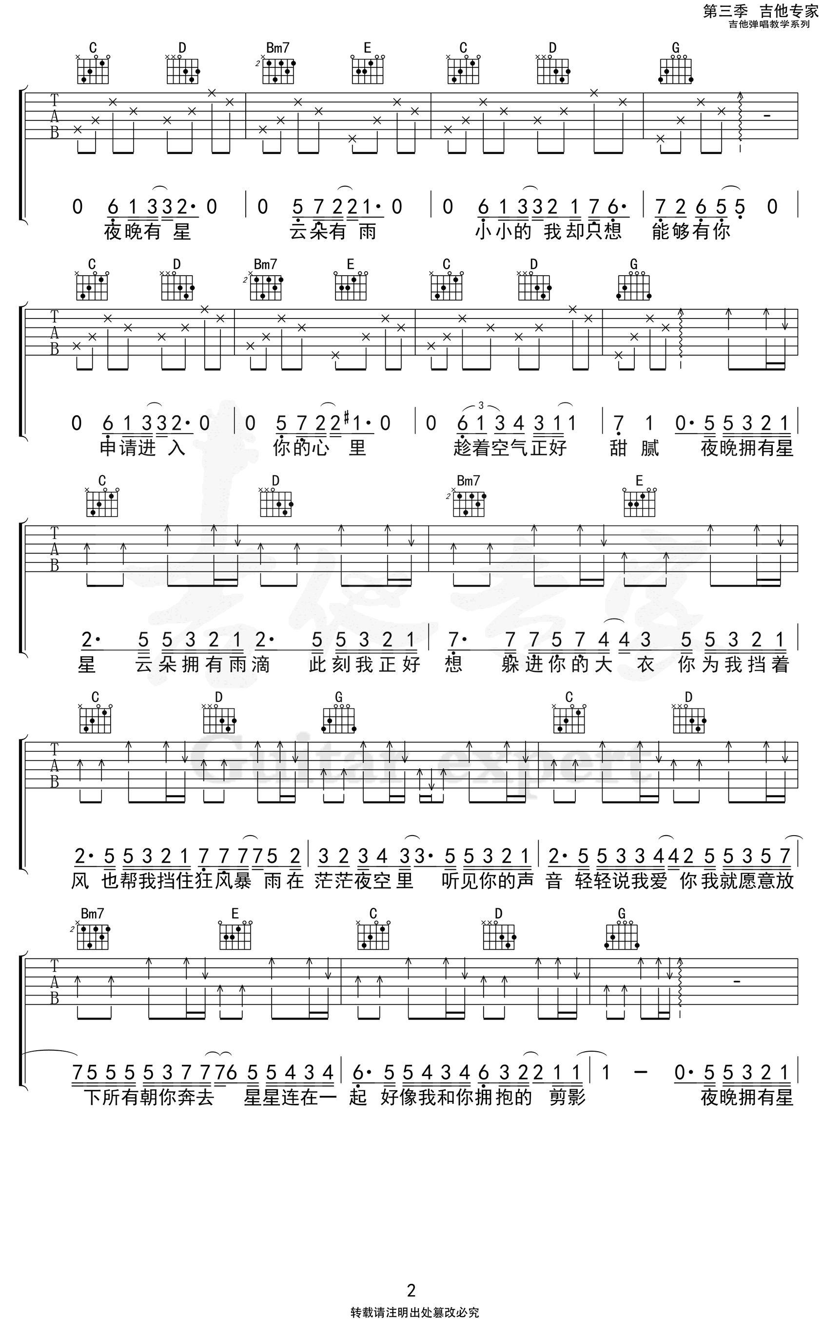 《蓝心羽《星空剪影吉他谱》(G调)》内容来自于互联网,不能保证内容的准确性与完整性,仅供学习交流欣赏,请勿用于其它用途,内容版权归原作者及来源网站所有,如有侵犯到您的权益请来信告知,我们将及时删除。