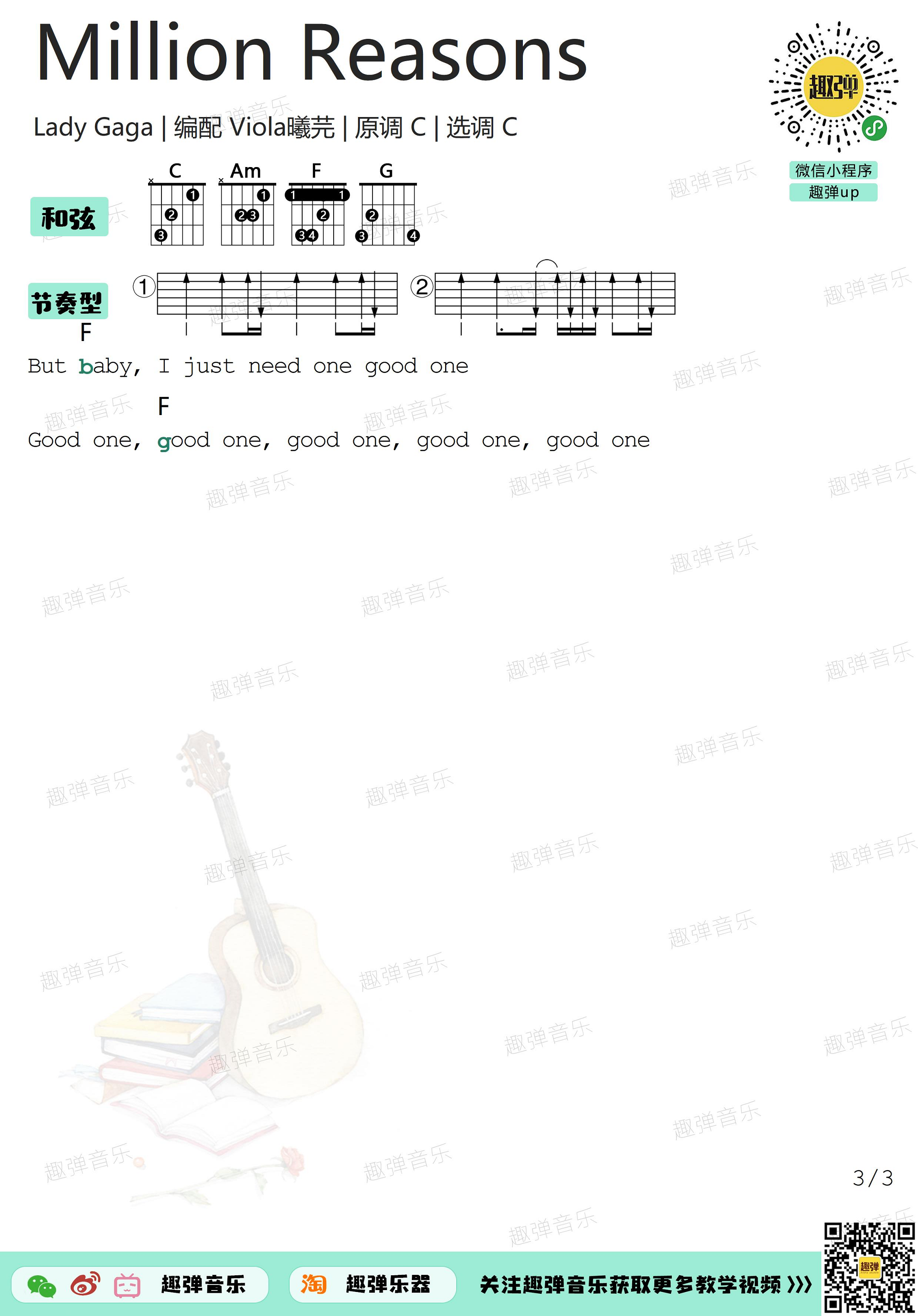 《《Million Reasons吉他谱》(C调)》内容来自于互联网,不能保证内容的准确性与完整性,仅供学习交流欣赏,请勿用于其它用途,内容版权归原作者及来源网站所有,如有侵犯到您的权益请来信告知,我们将及时删除。