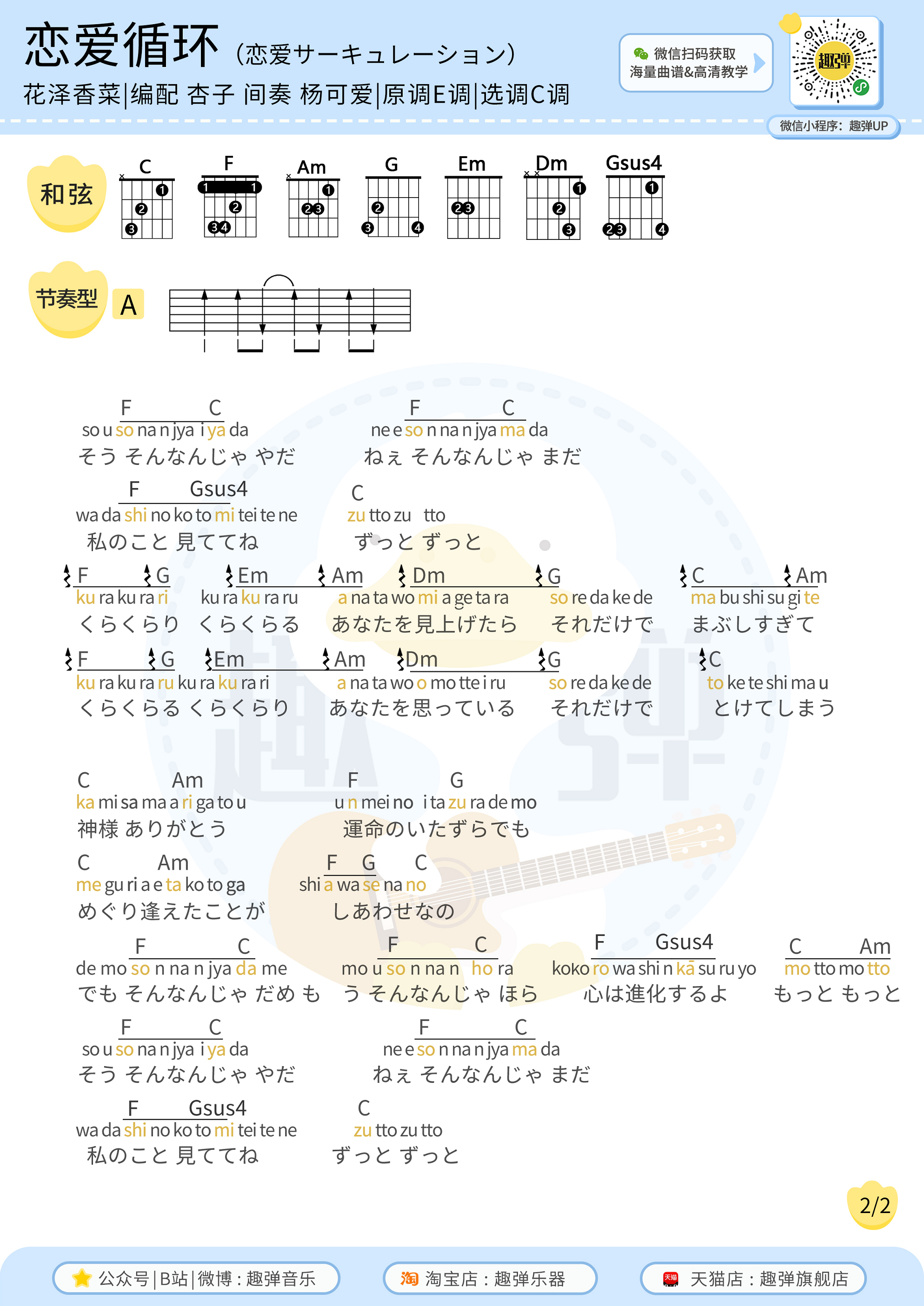 《花泽香菜《恋爱循环吉他谱》(C调)》内容来自于互联网,不能保证内容的准确性与完整性,仅供学习交流欣赏,请勿用于其它用途,内容版权归原作者及来源网站所有,如有侵犯到您的权益请来信告知,我们将及时删除。