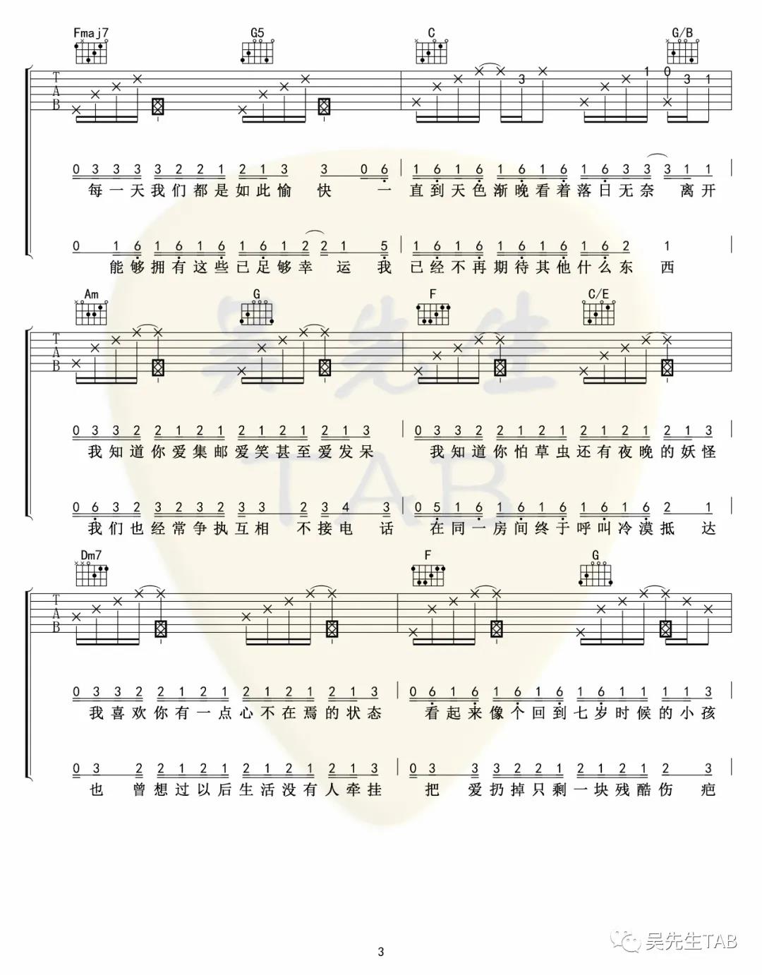 王贰浪《把回忆拼好给你吉他谱》(C调)