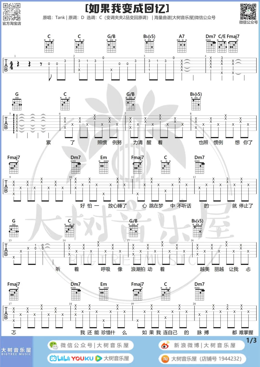 《《如果我变成回忆吉他谱》(C调)》内容来自于互联网,不能保证内容的准确性与完整性,仅供学习交流欣赏,请勿用于其它用途,内容版权归原作者及来源网站所有,如有侵犯到您的权益请来信告知,我们将及时删除。